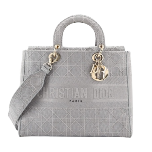 Dior Lady Mini - Cannage Lambskin Grey Gray Gold Hardware Adjustable Strap