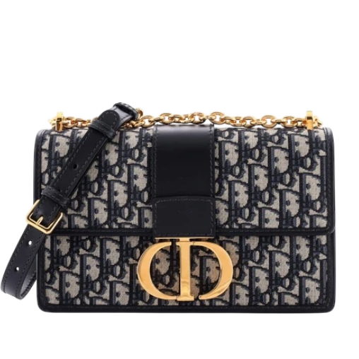 Dior Lady Small Flap - Cannage Lambskin Dark Navy Blue Gold Hardware with Charms