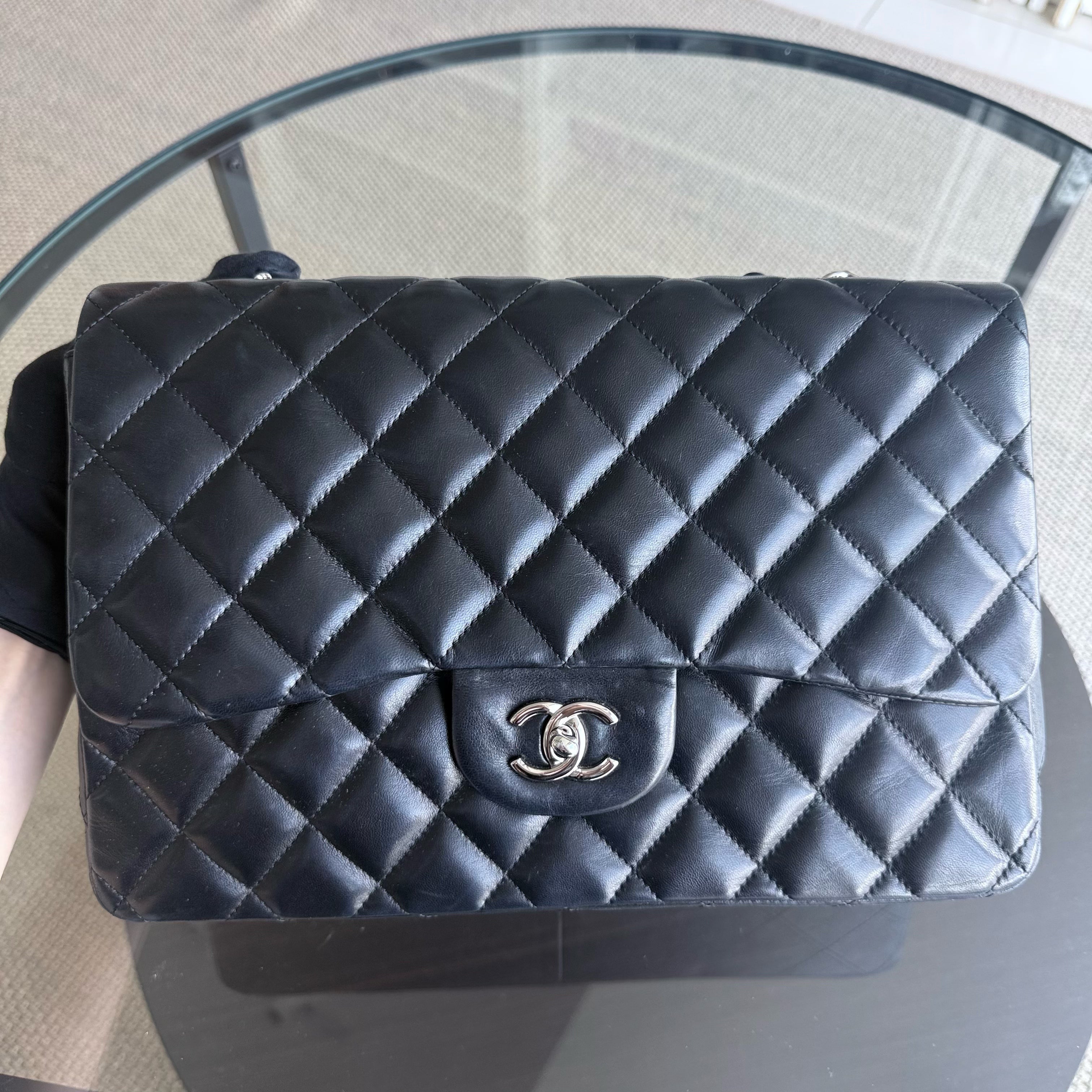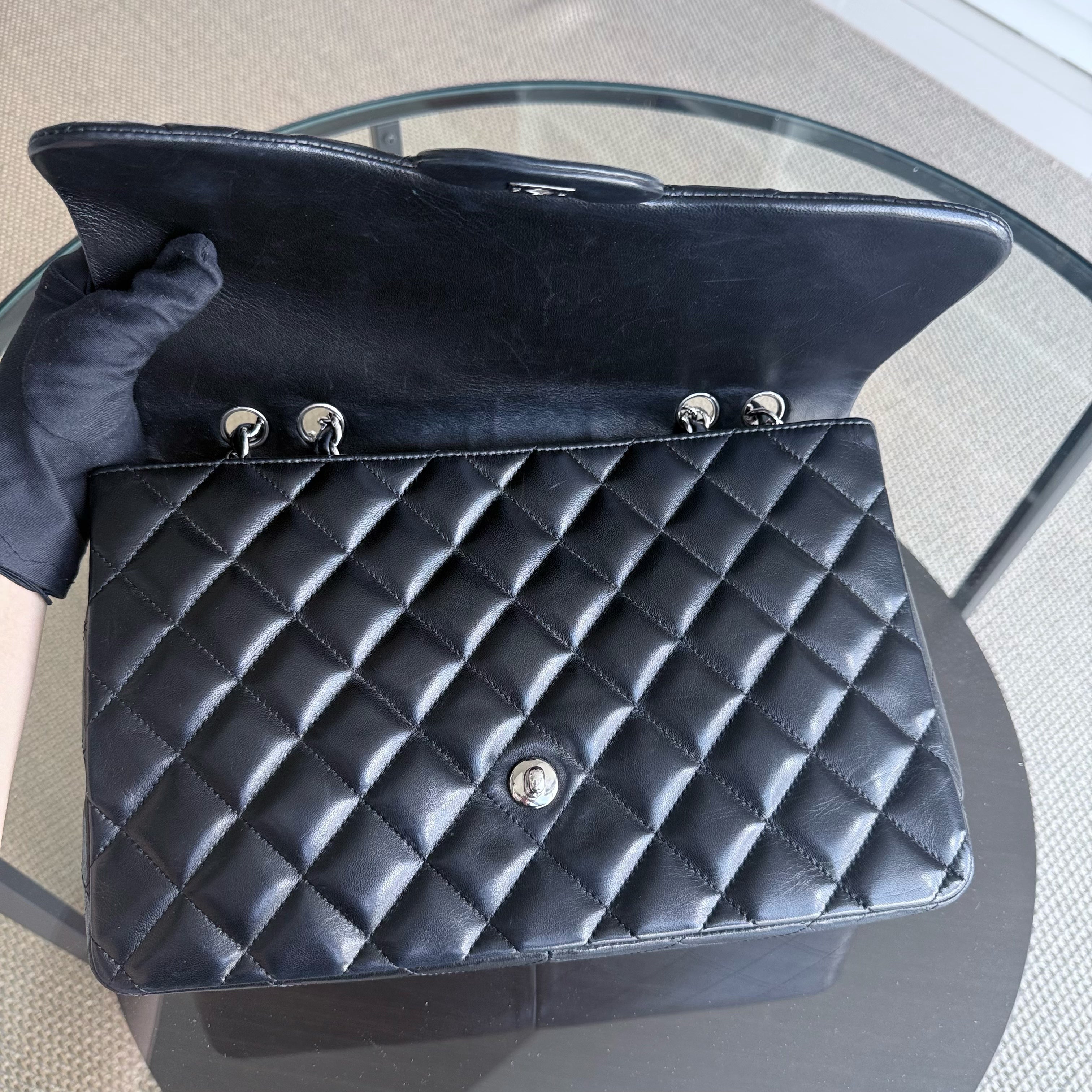 Chanel Classic Flap Jumbo - 30CM Quilted Lambskin Single Flap Black Silver Hardware