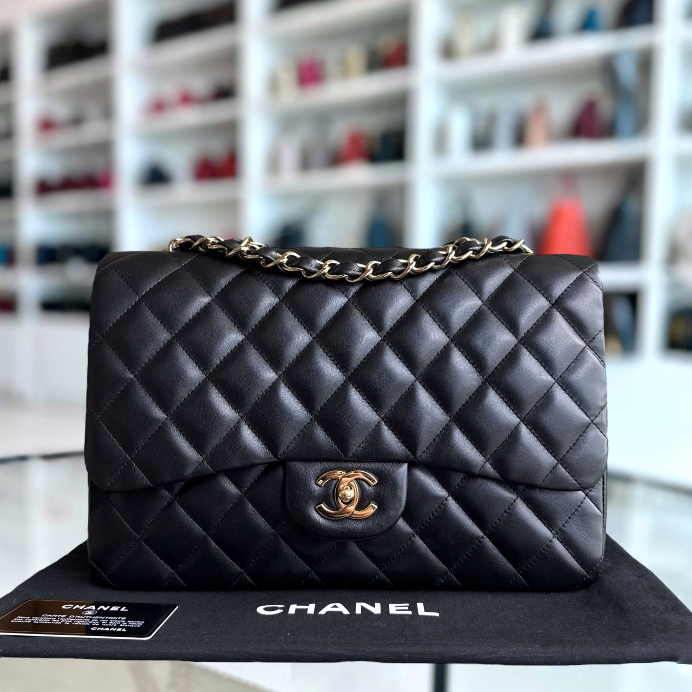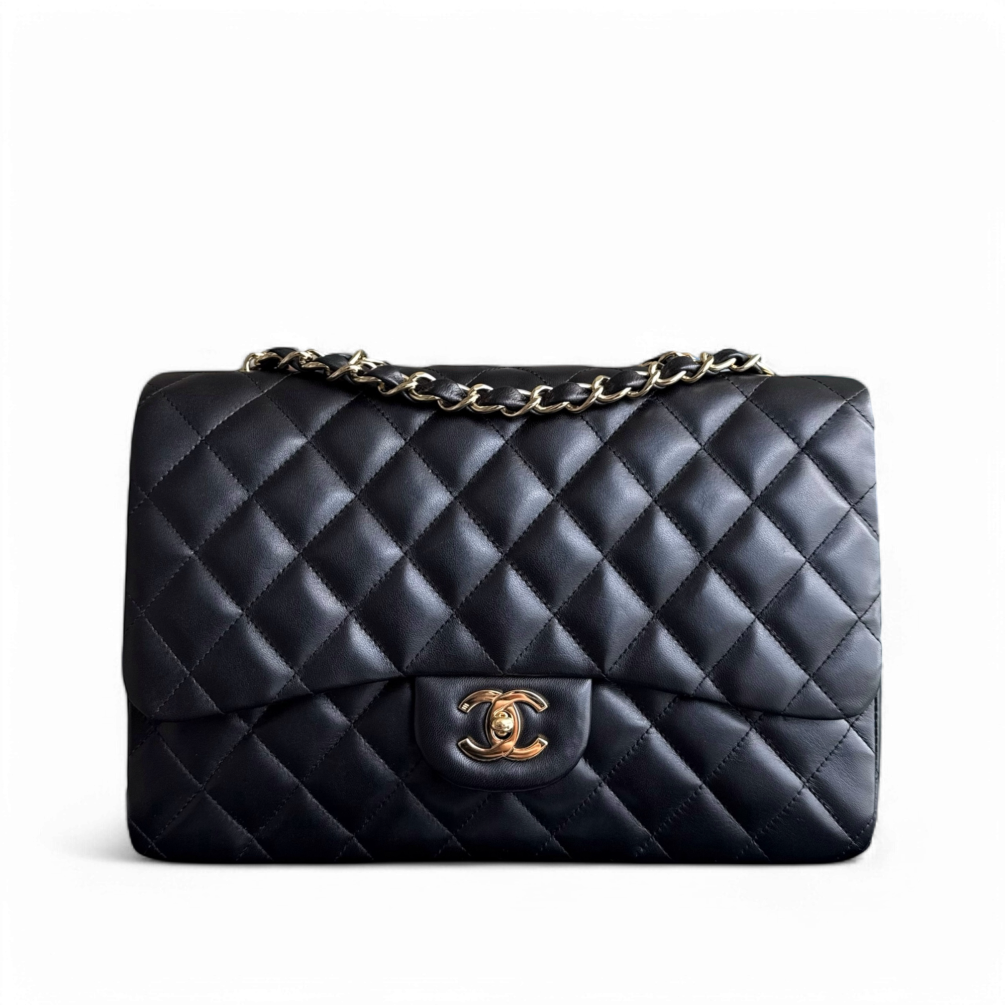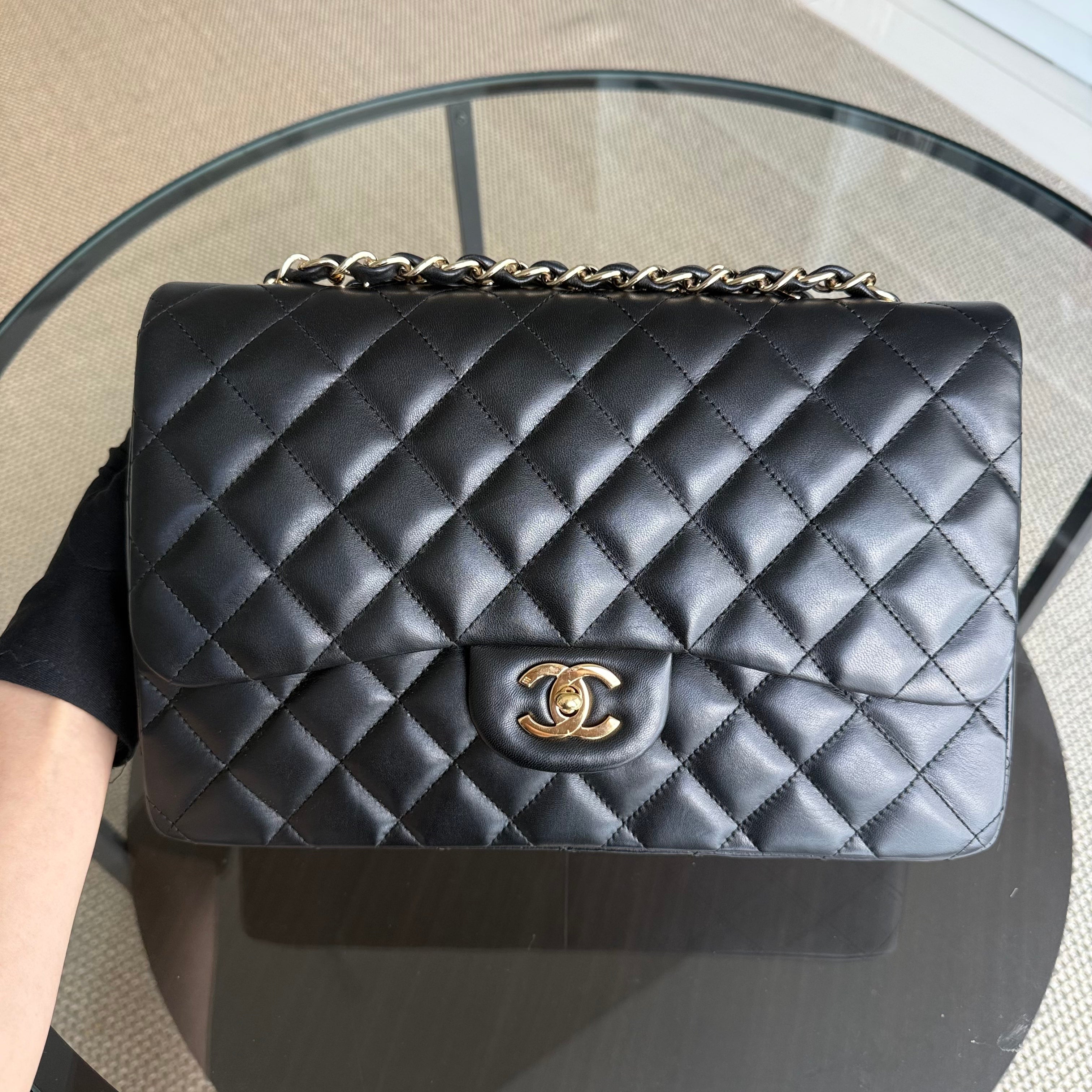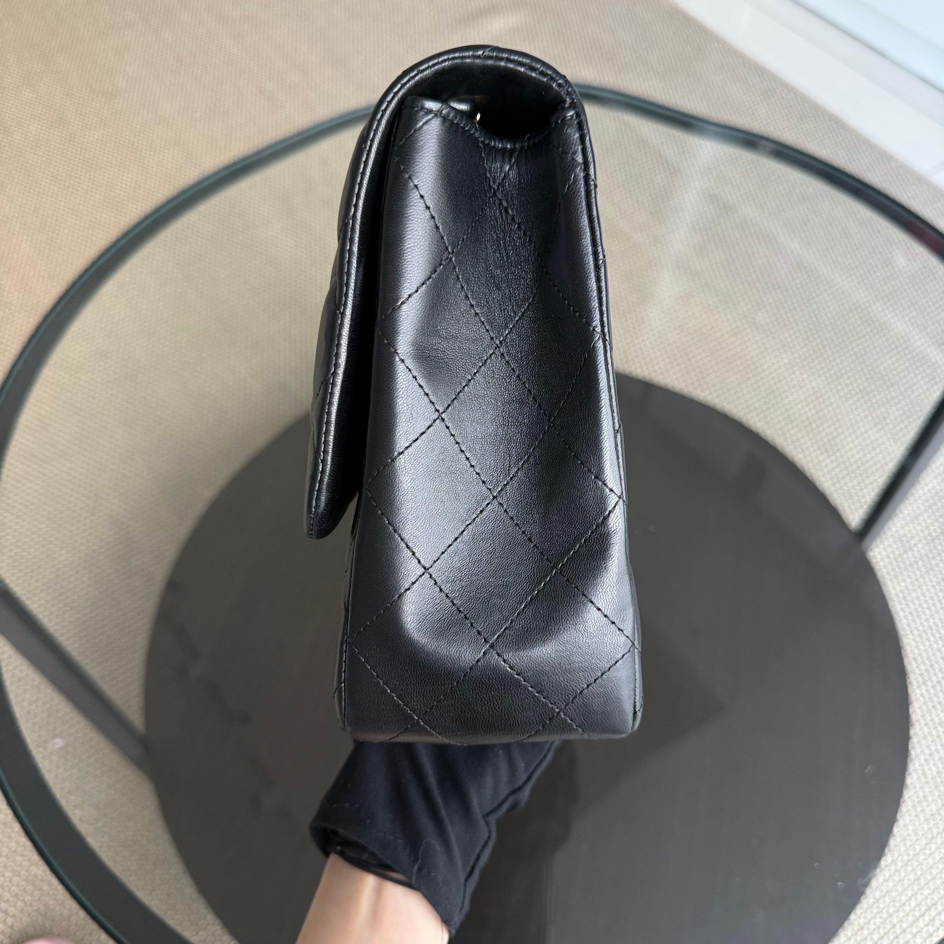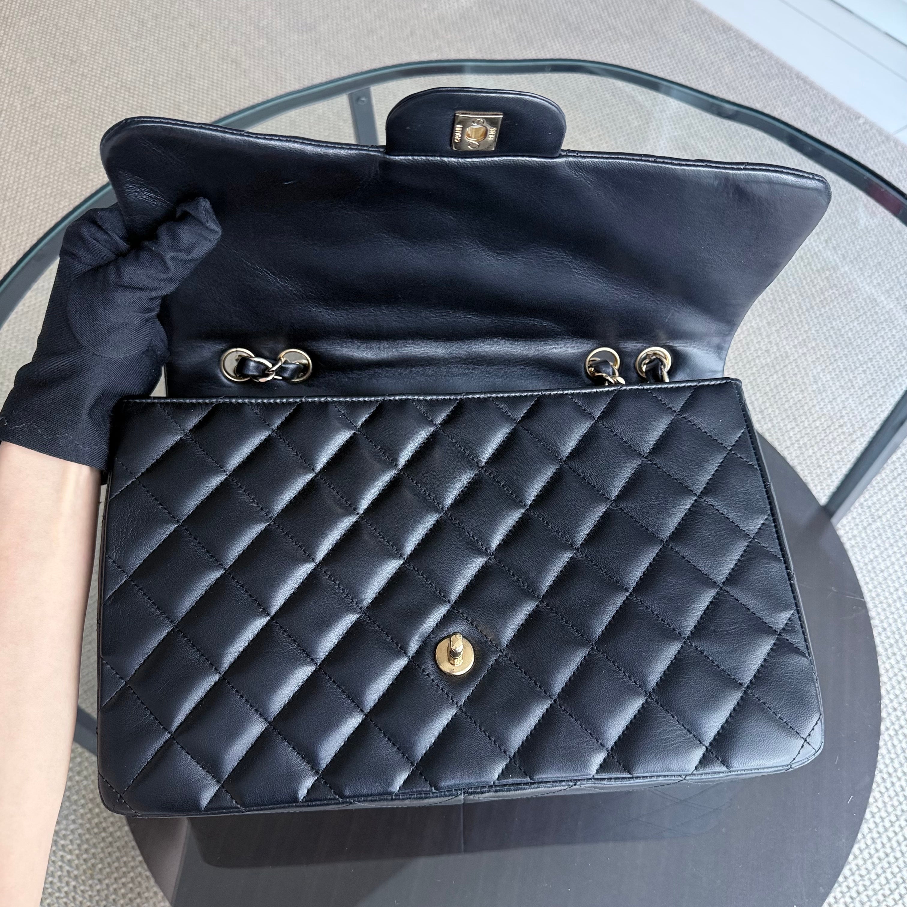 Chanel Classic Flap Jumbo - 30CM Single Flap Quilted Lambskin Black Gold Hardware Series 11