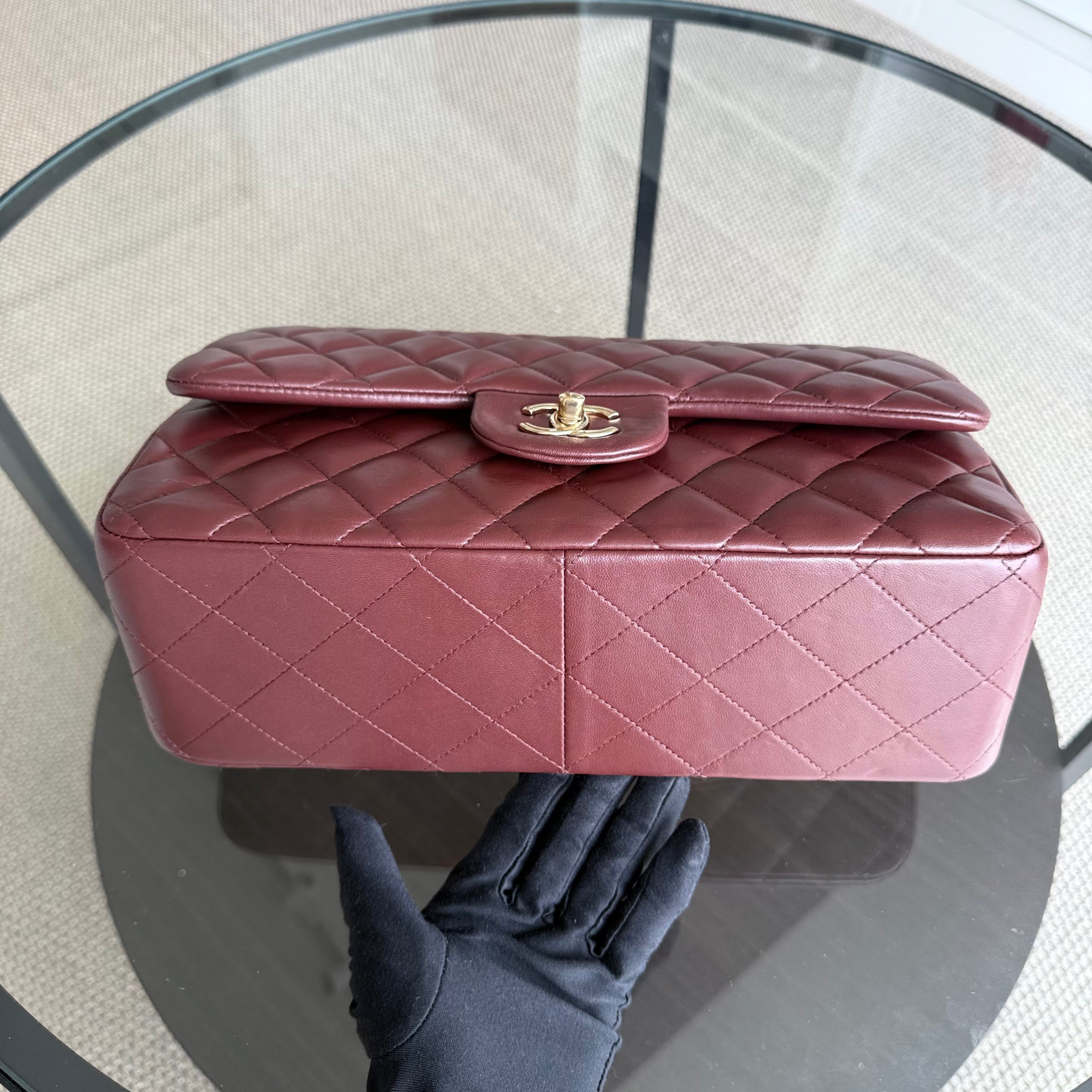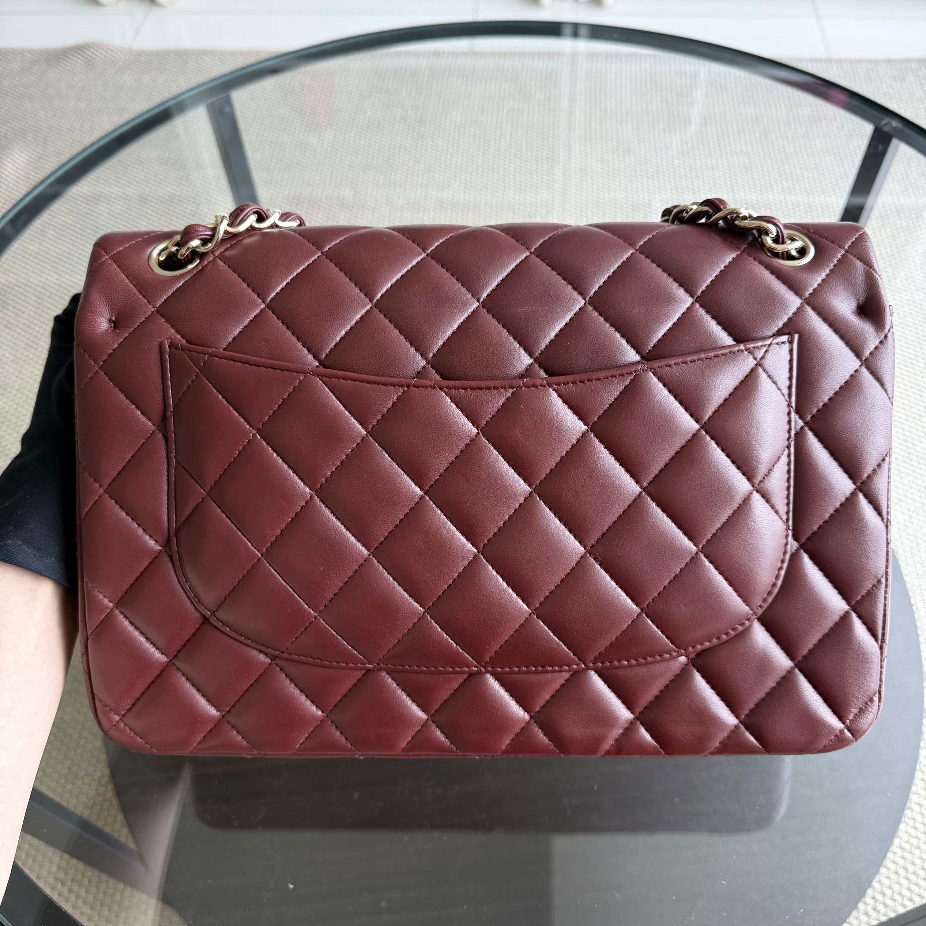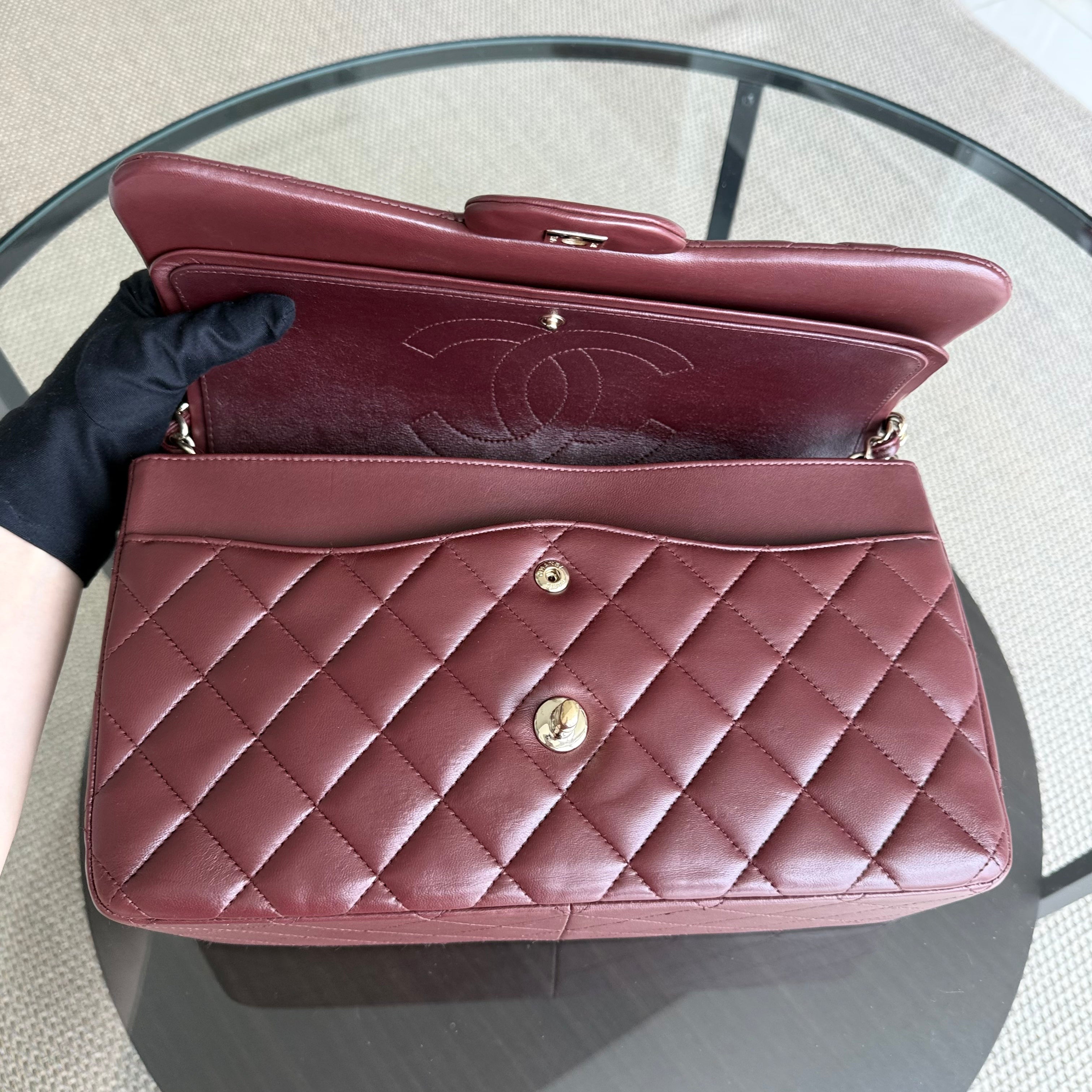 Chanel Classic Flap Jumbo - Double Flap 30CM Quilted Lambskin Burgundy Dark Red Gold Hardware Series 21