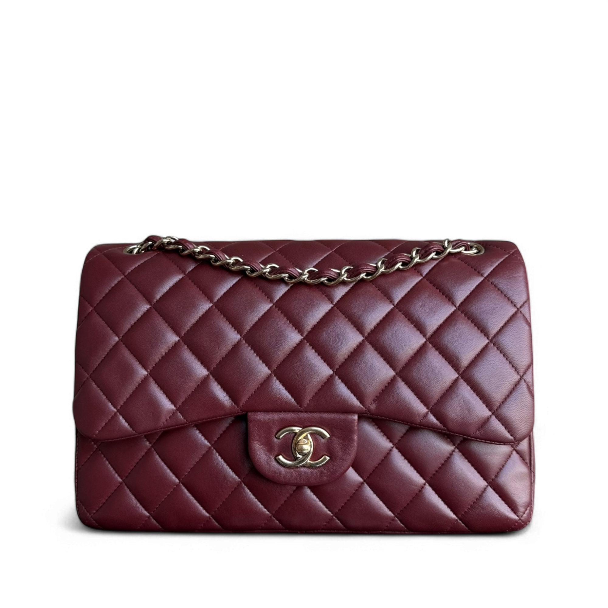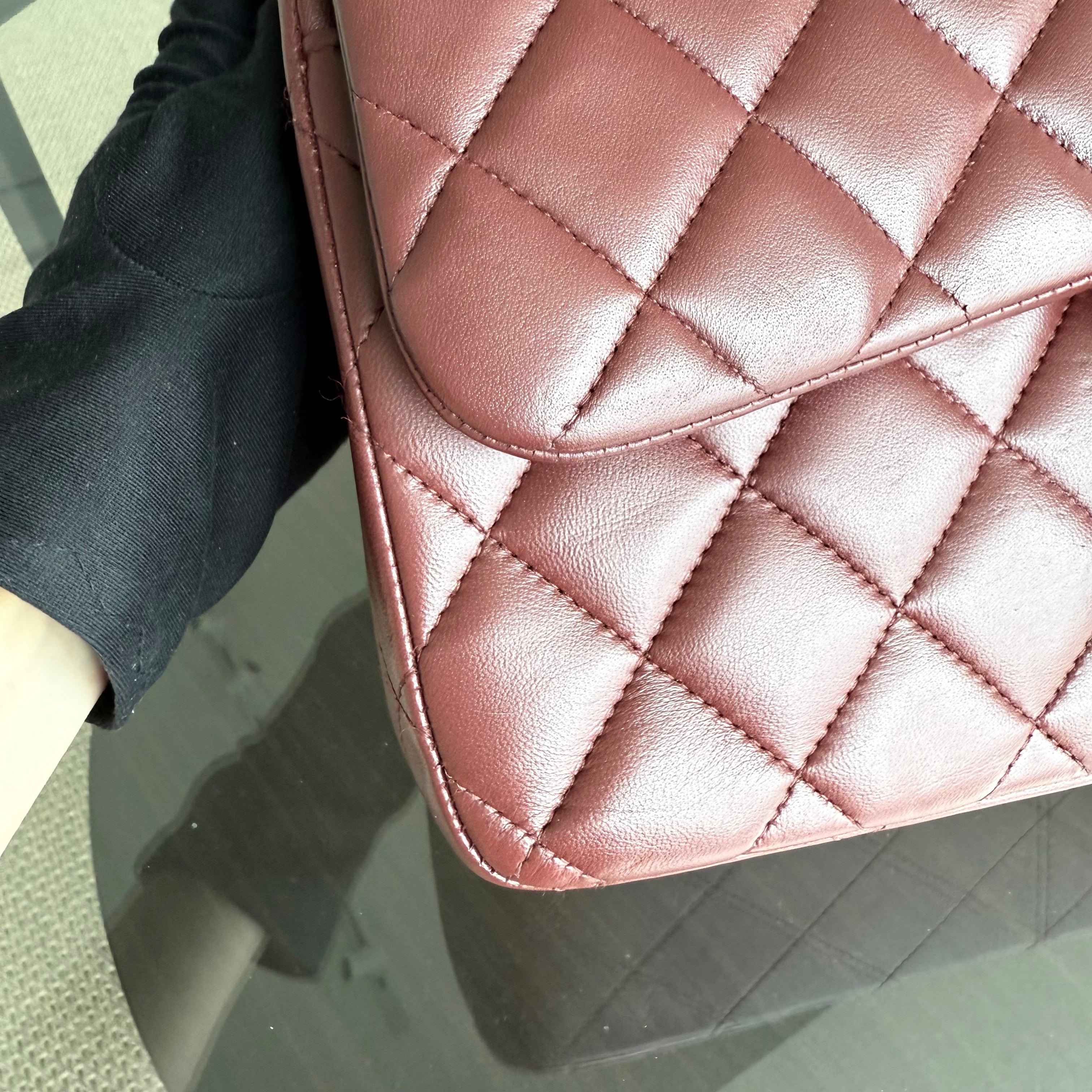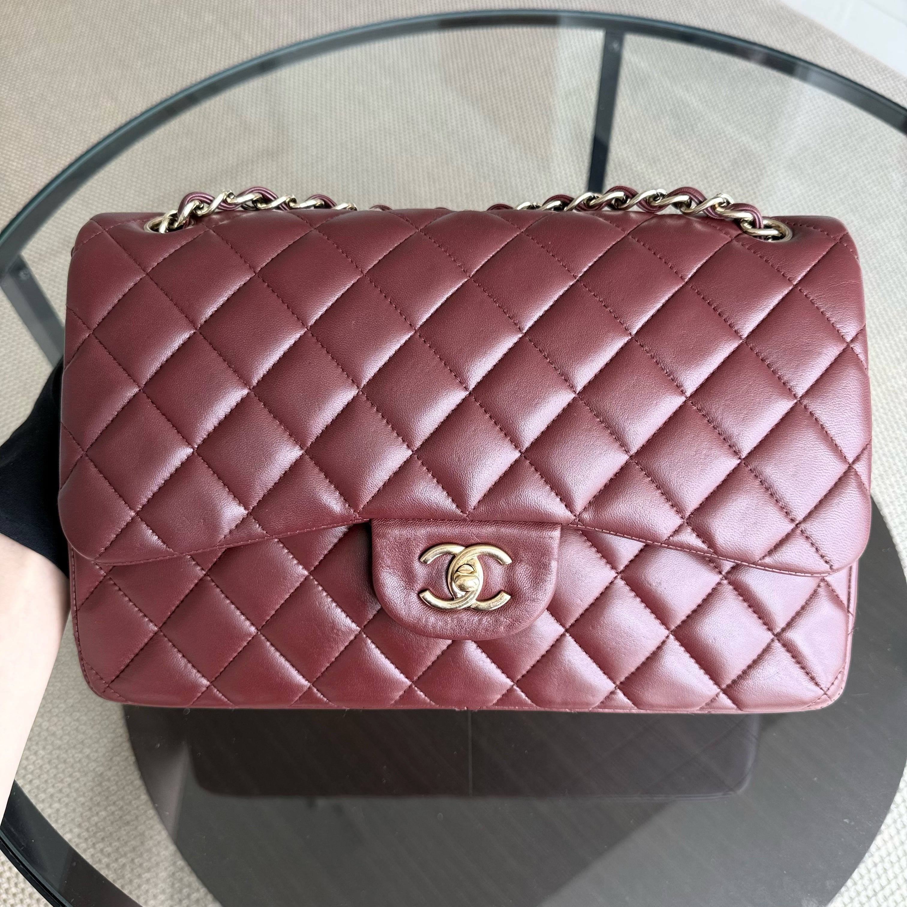 Chanel Classic Flap Jumbo - Double Flap 30CM Quilted Lambskin Burgundy Dark Red Gold Hardware Series 21