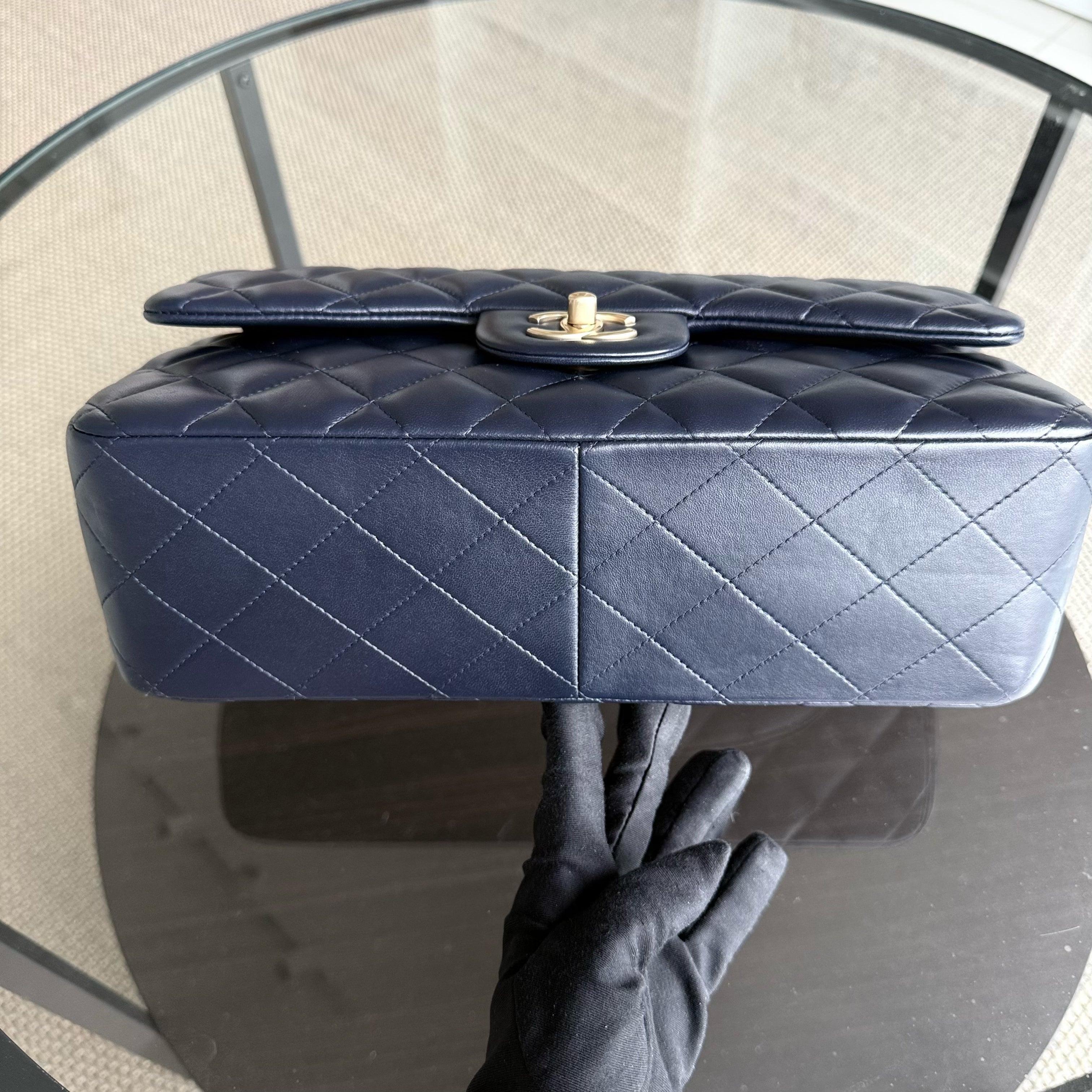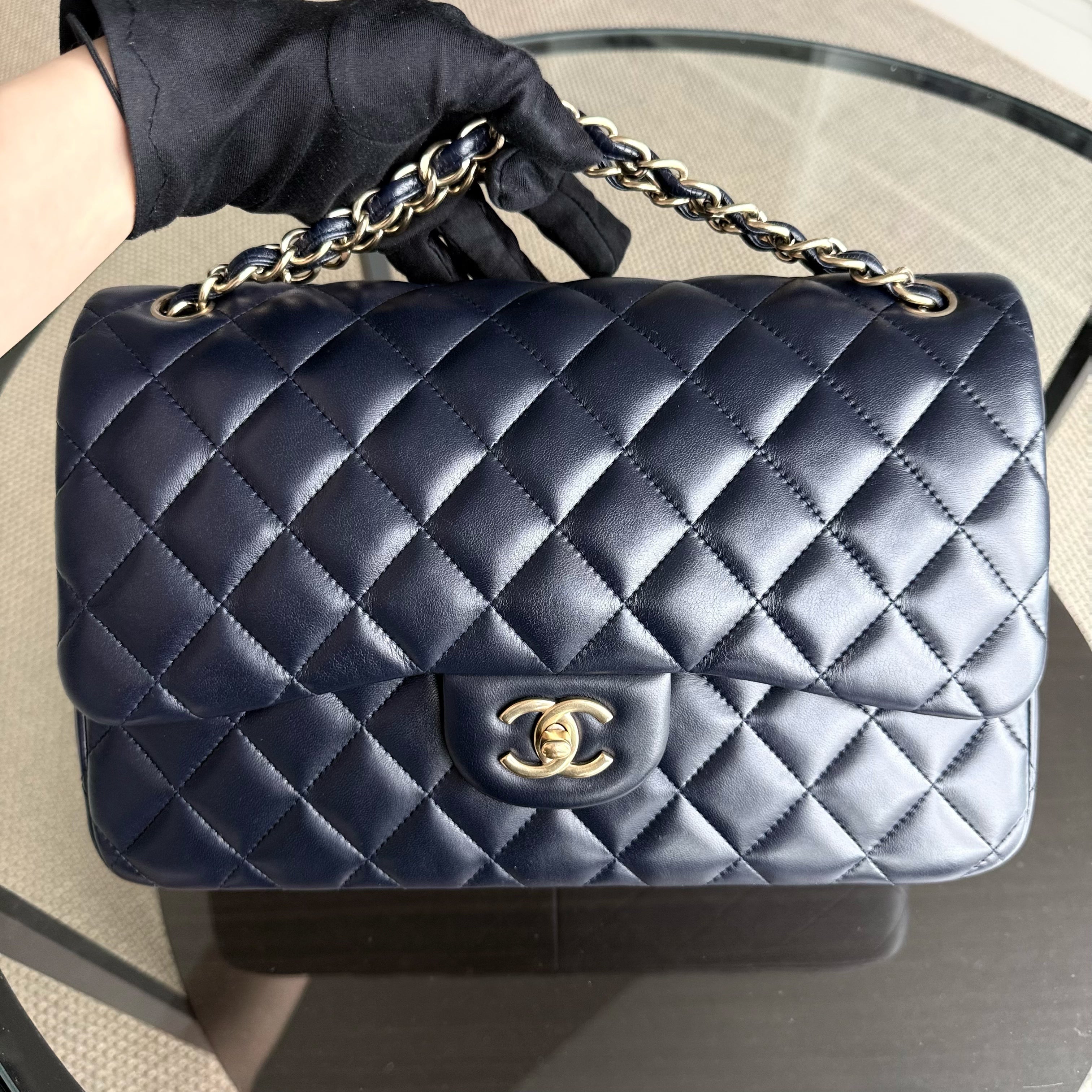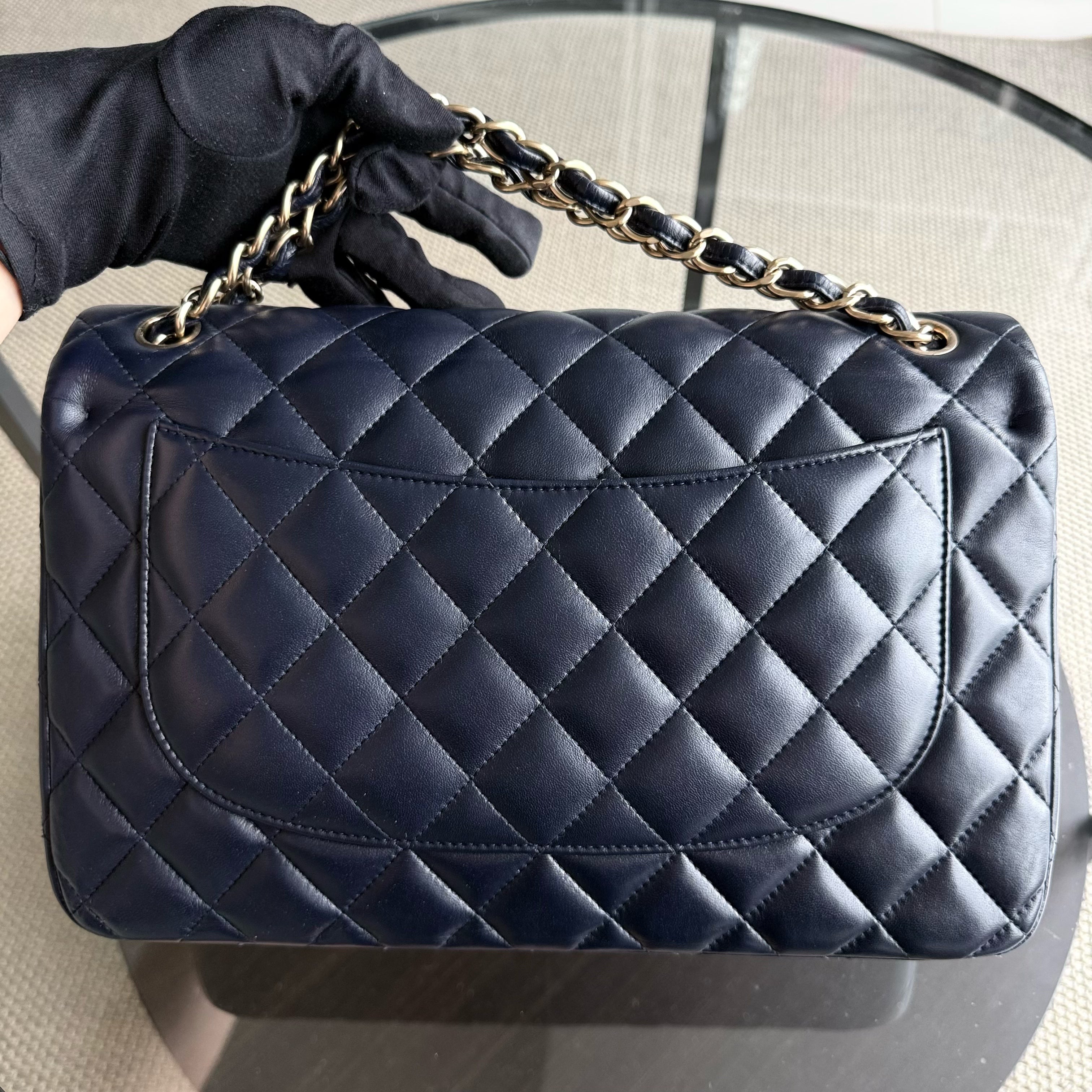 Chanel Classic Flap Jumbo - Double Flap 30CM Quilted Lambskin Dark Midnight Blue Gold Hardware Series 20
