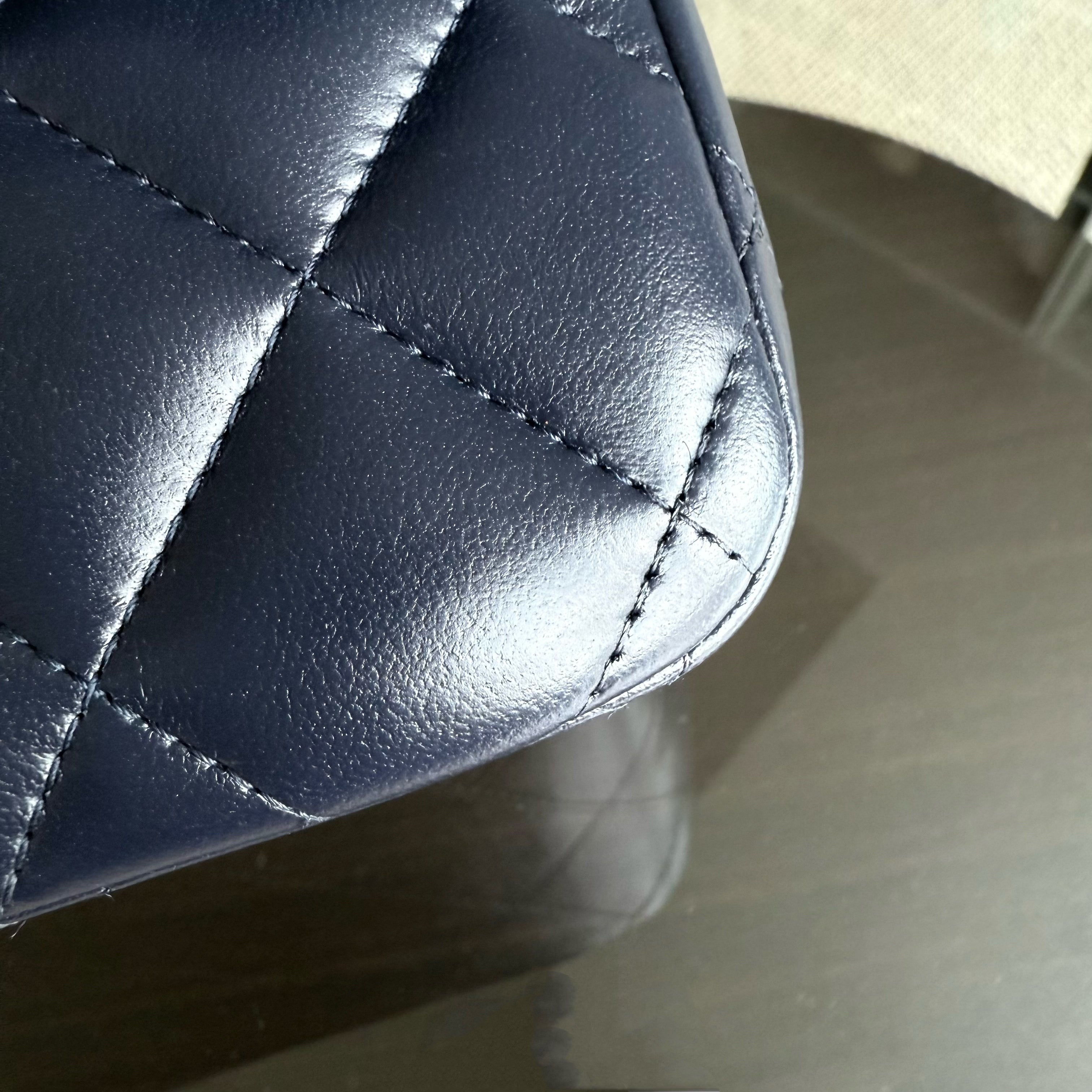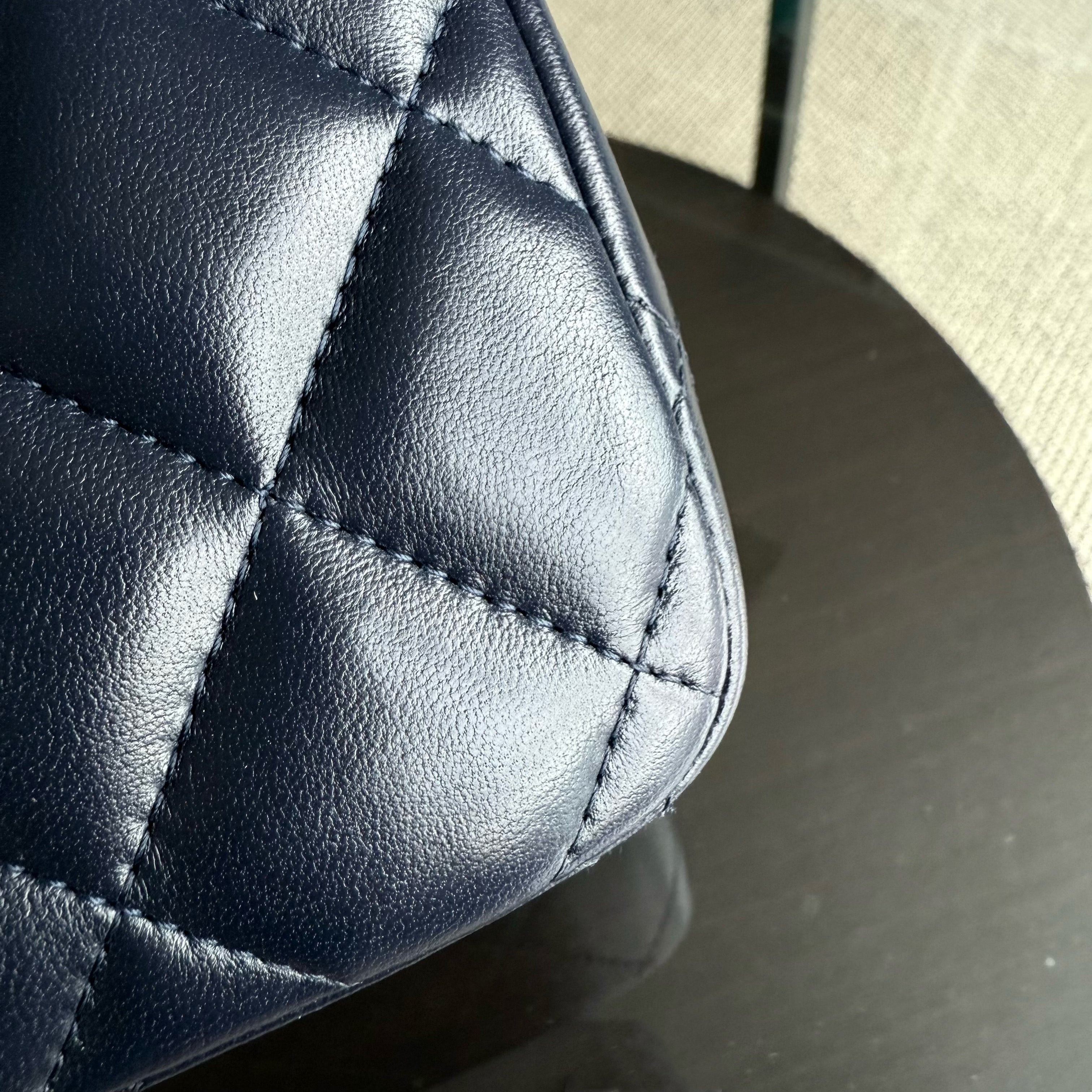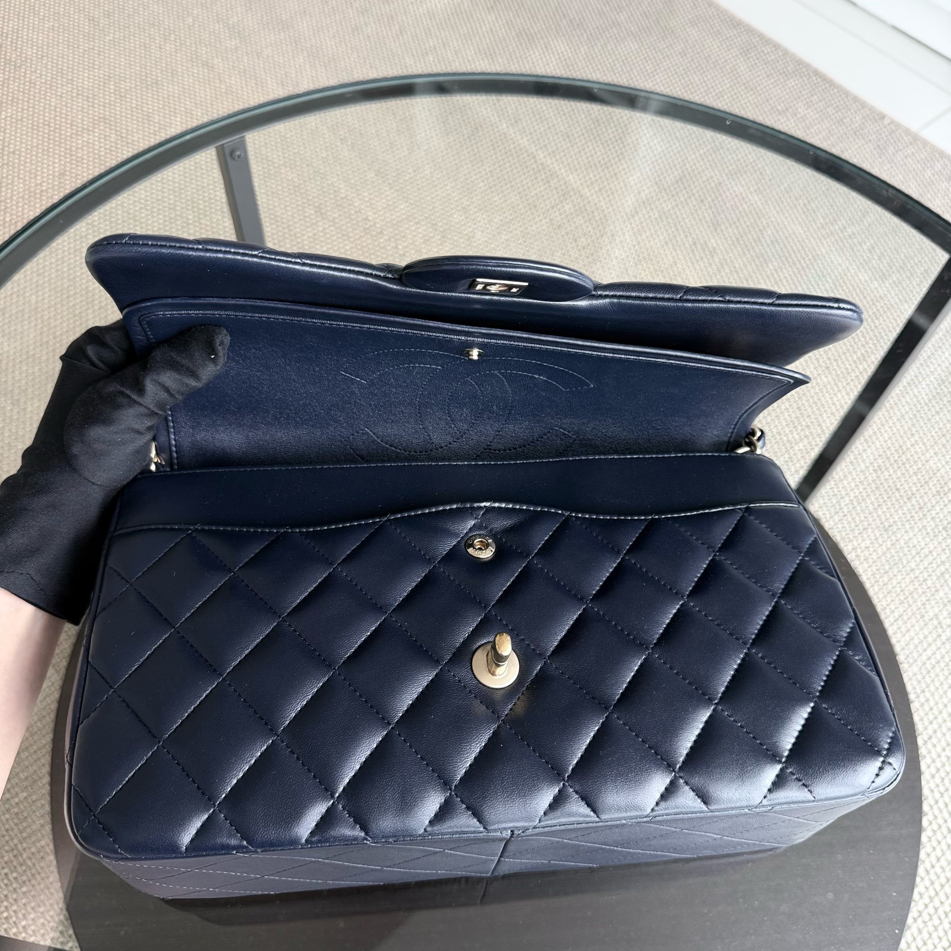 Chanel Classic Flap Jumbo - Double Flap 30CM Quilted Lambskin Dark Midnight Blue Gold Hardware Series 20