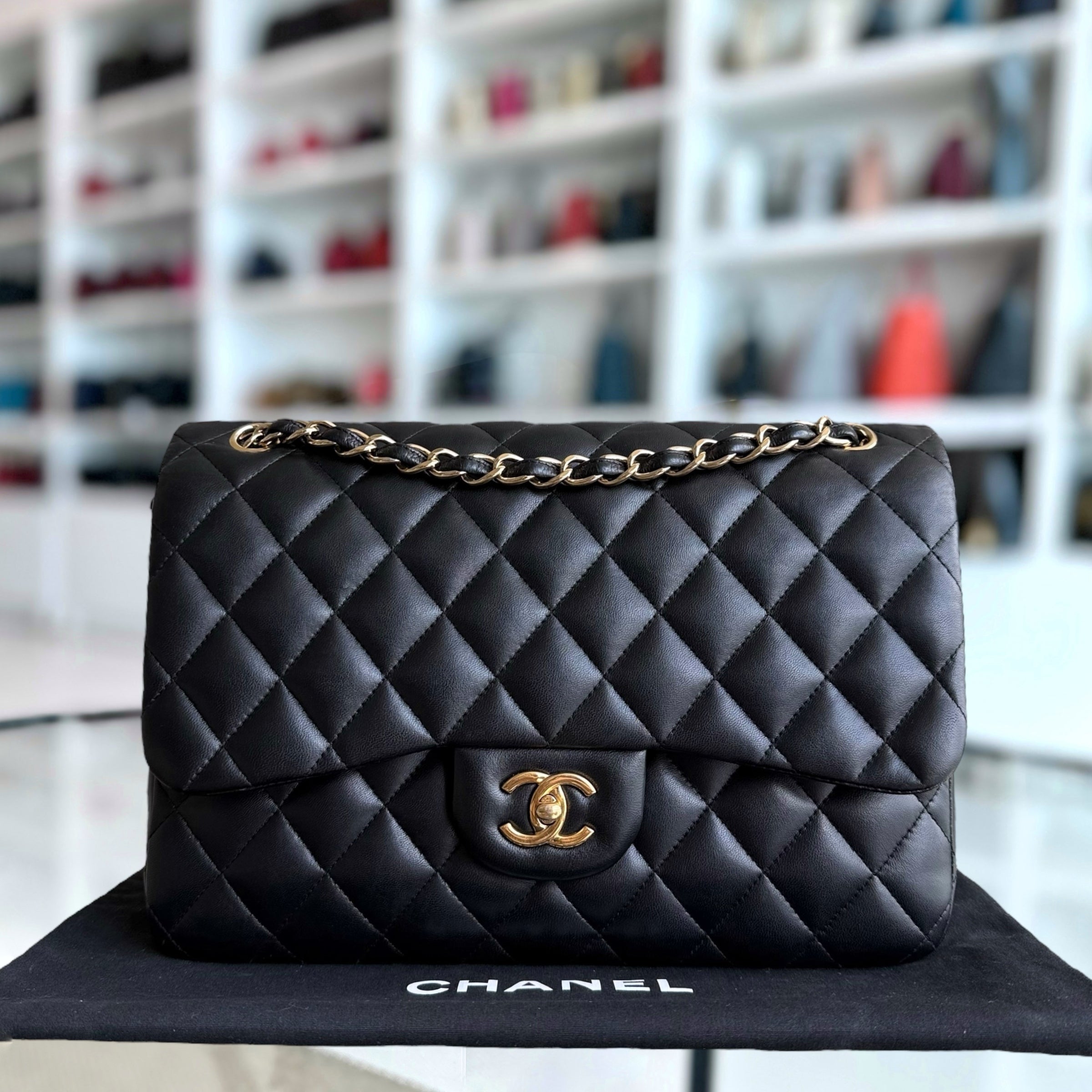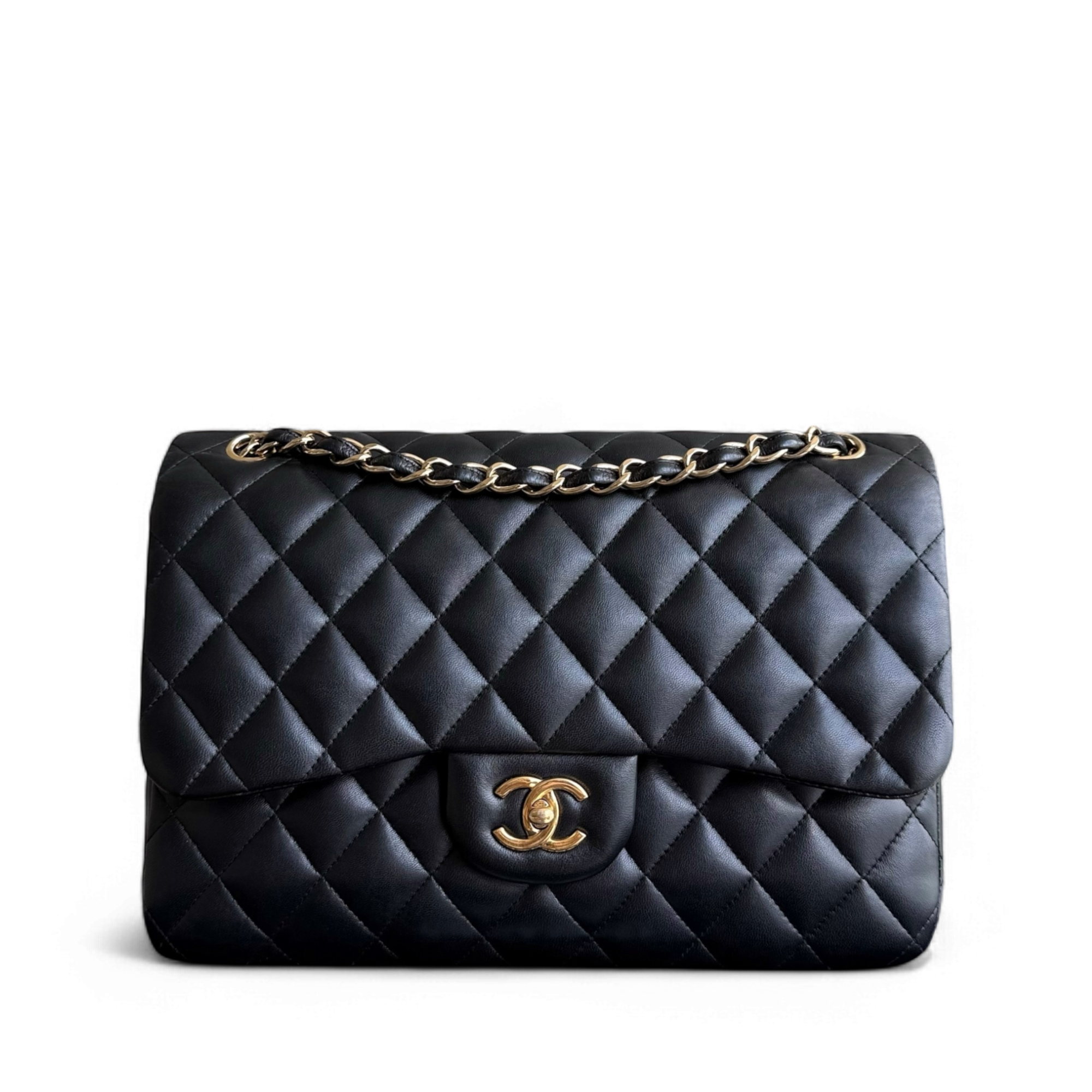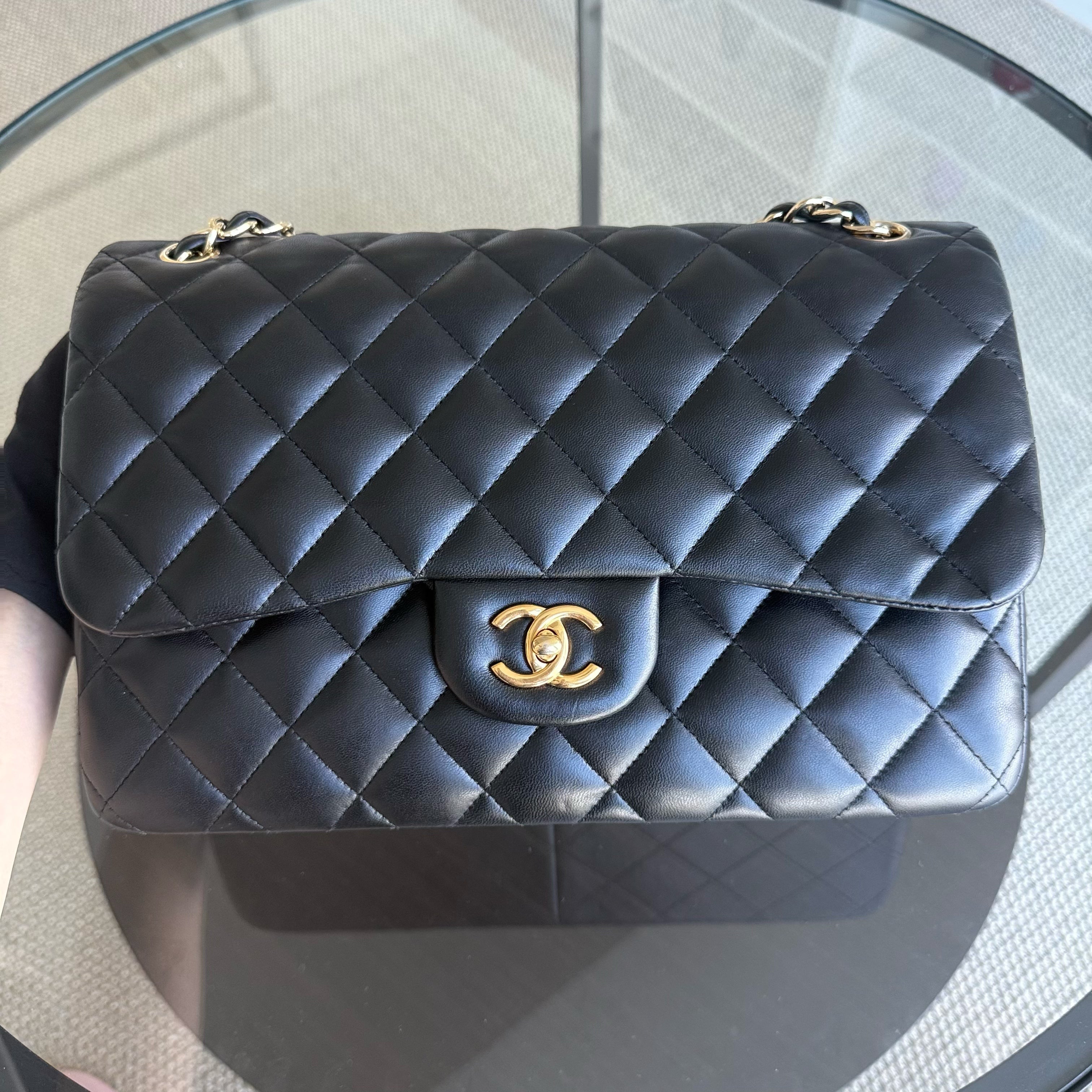 Chanel Classic Flap Jumbo - Double Flap Quilted Lambskin Black Gold Hardware Series 19