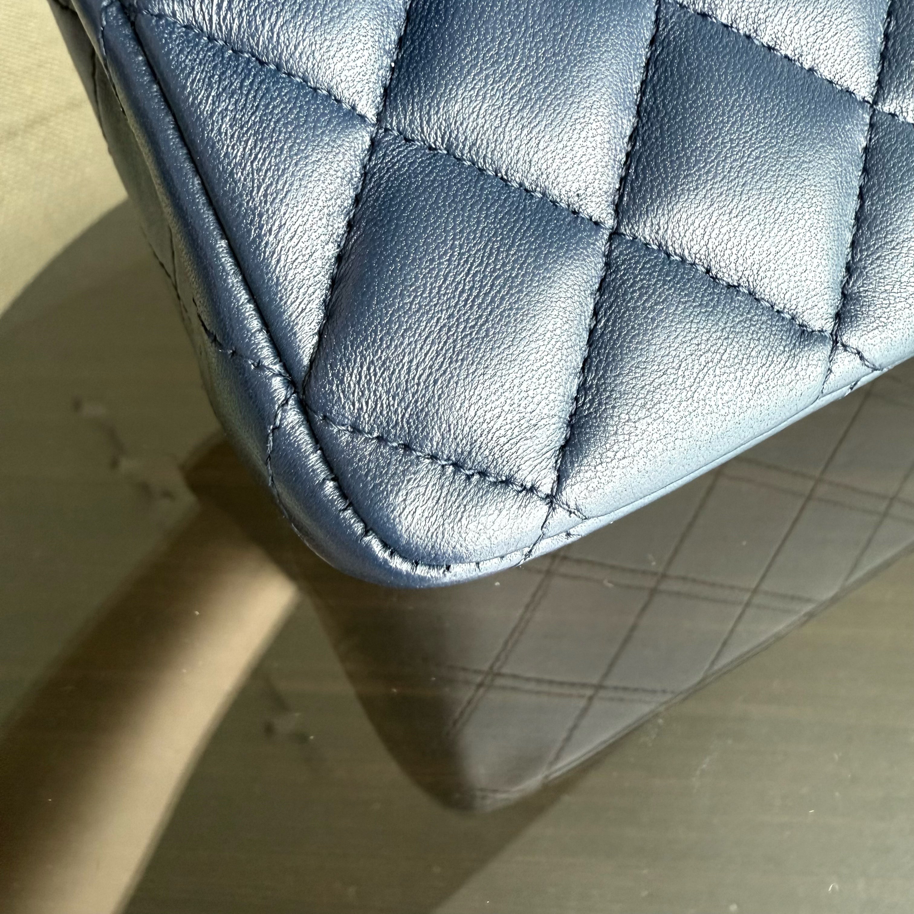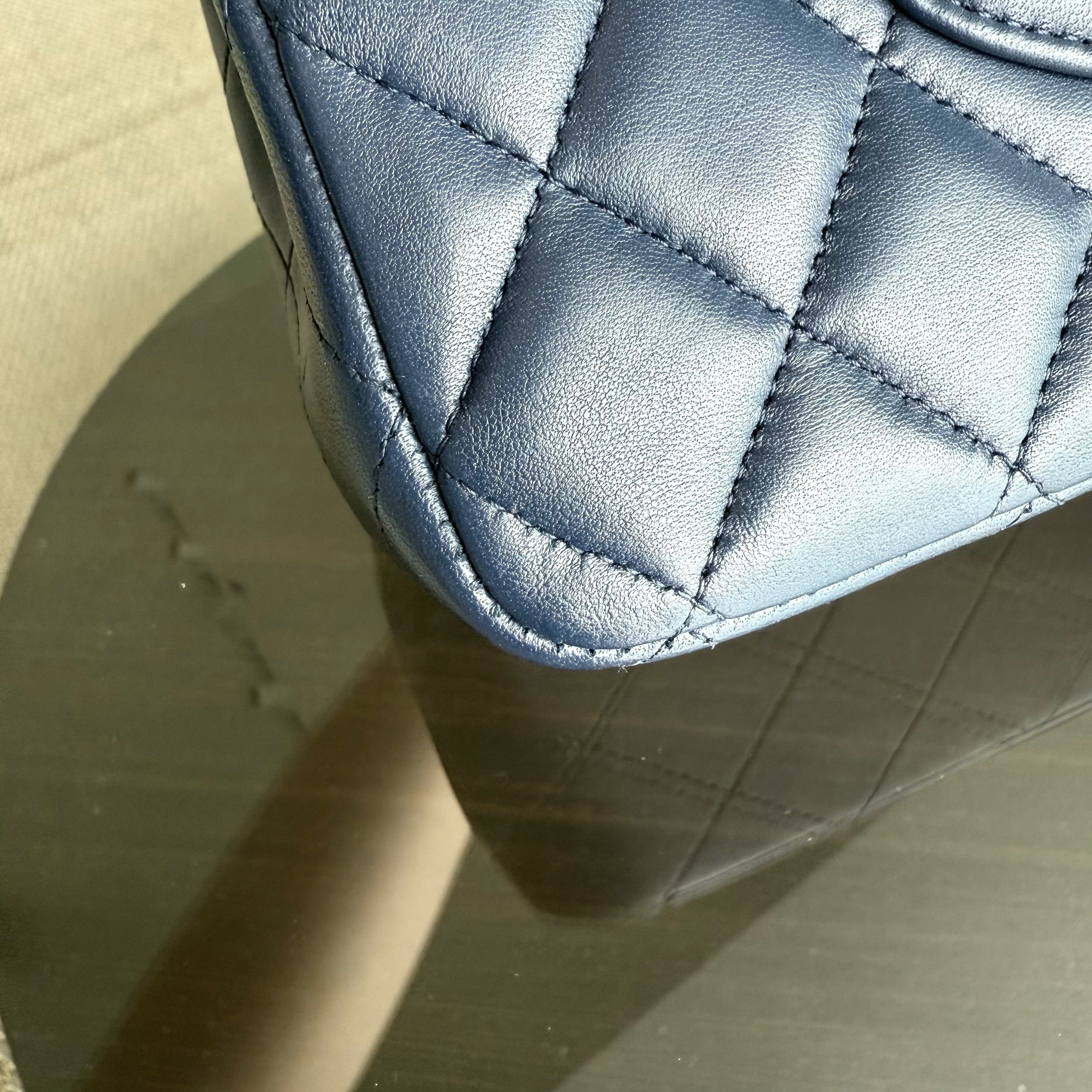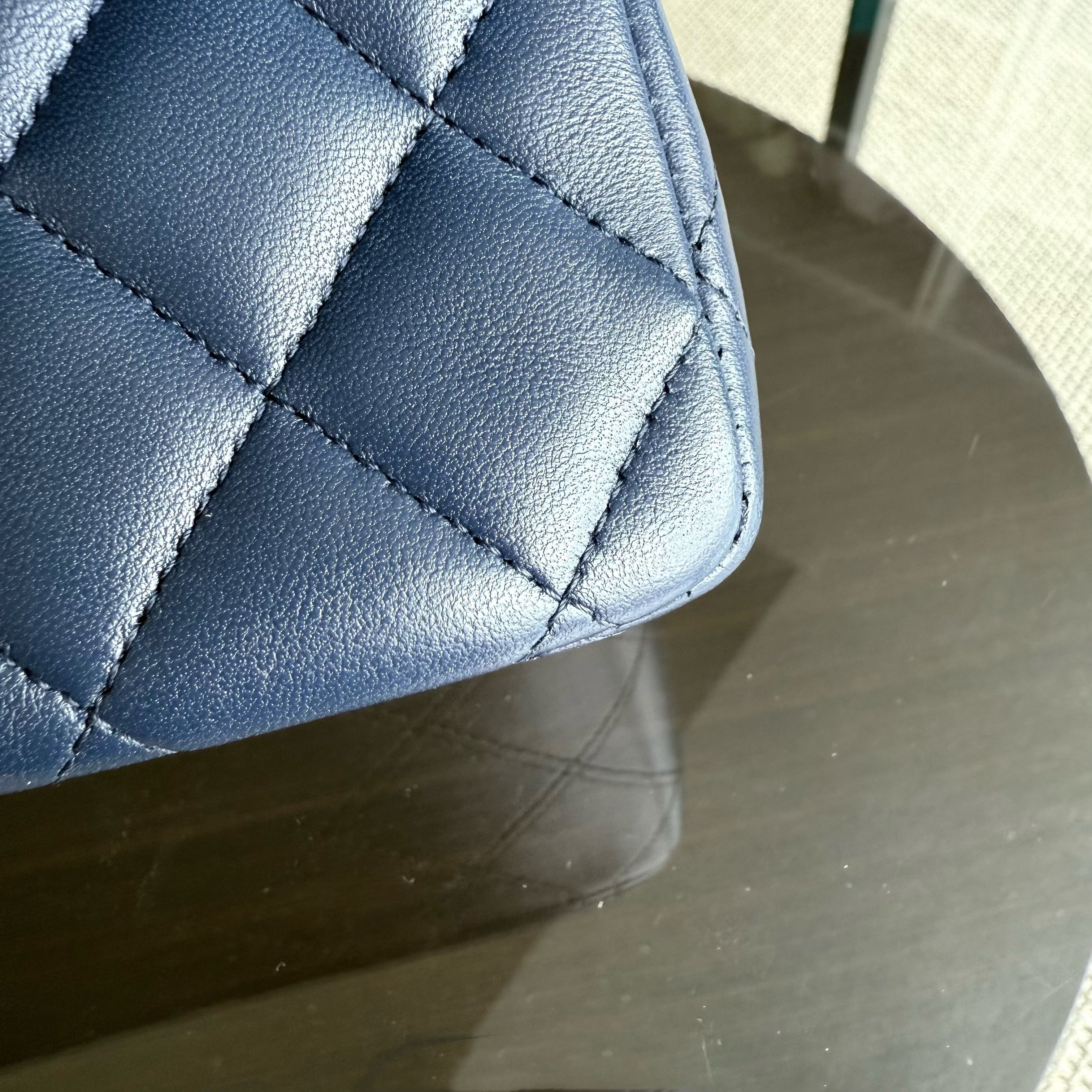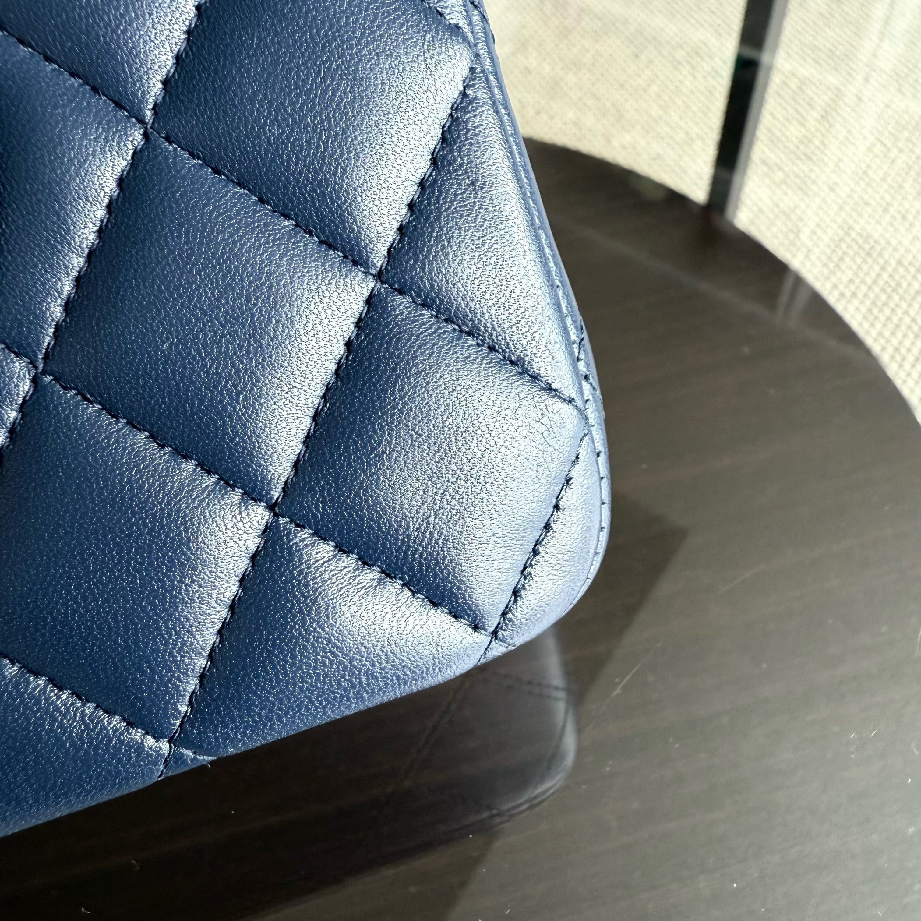 Chanel Classic Flap Medium - 25CM Quilted Lambskin Dark Navy Blue Silver Hardware Series 22