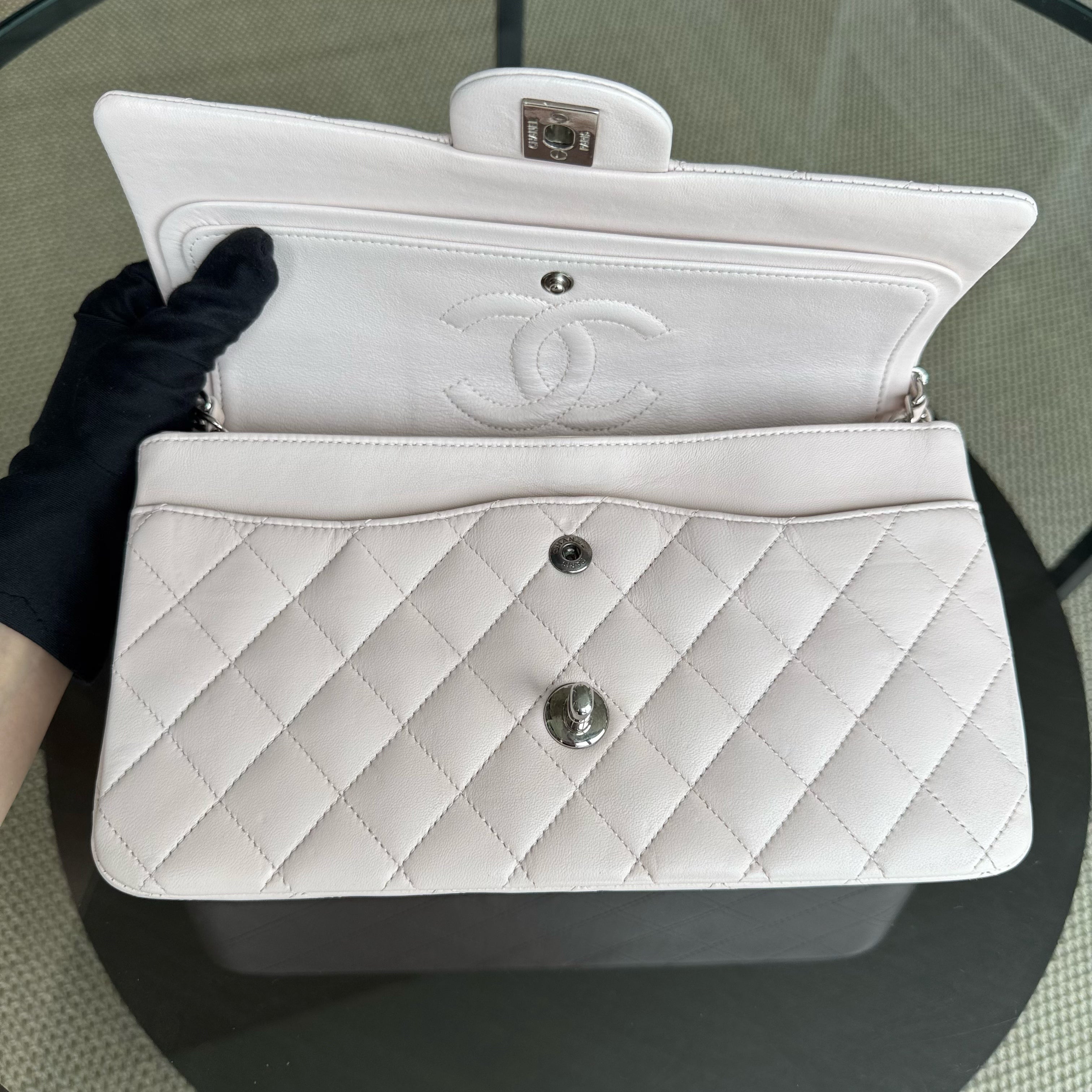 Chanel Classic Flap Medium - 25CM Quilted Lambskin Light Pink Silver Hardware Series 14