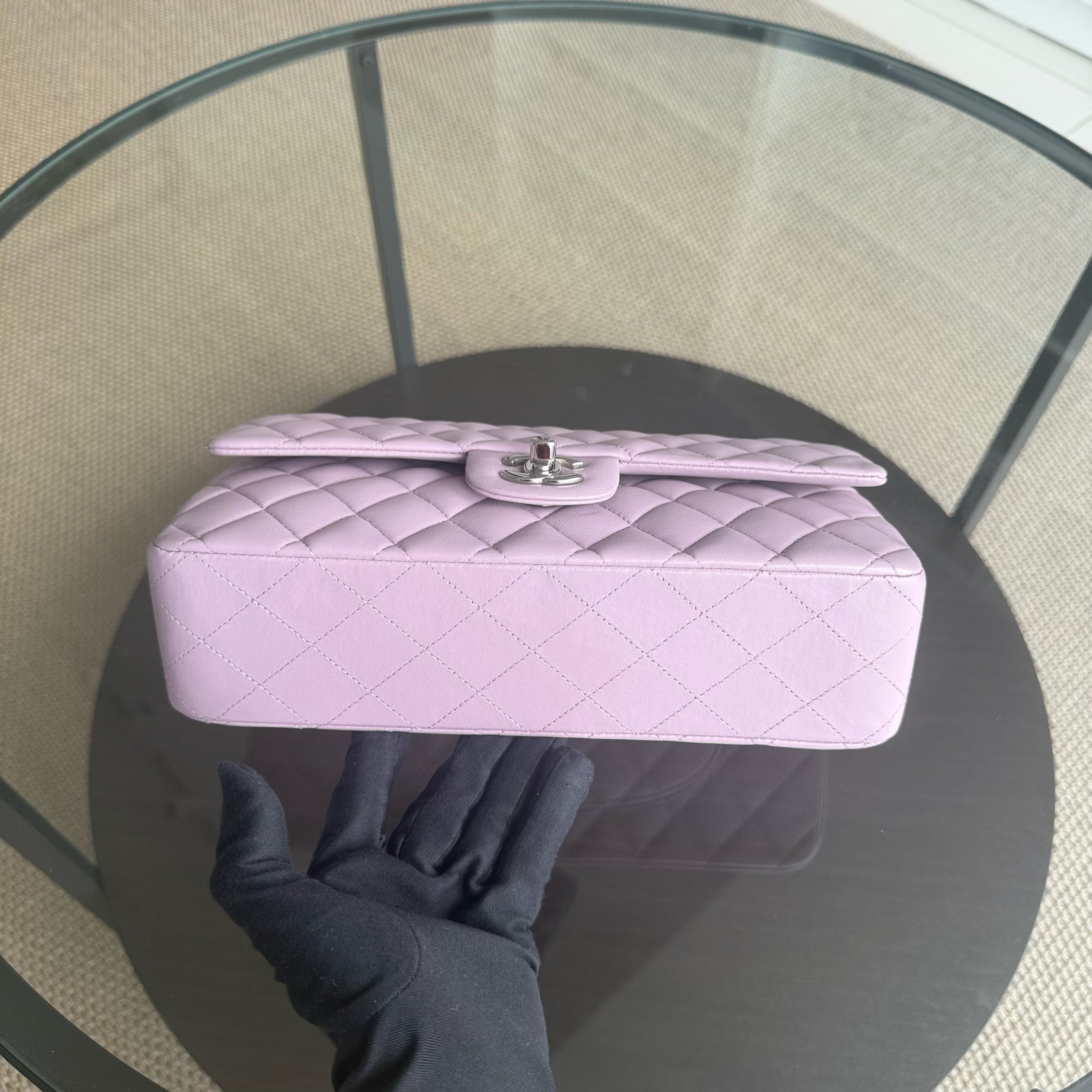 Chanel Classic Flap Medium - 25CM Quilted Lambskin Light Purple Silver Hardware Series 17
