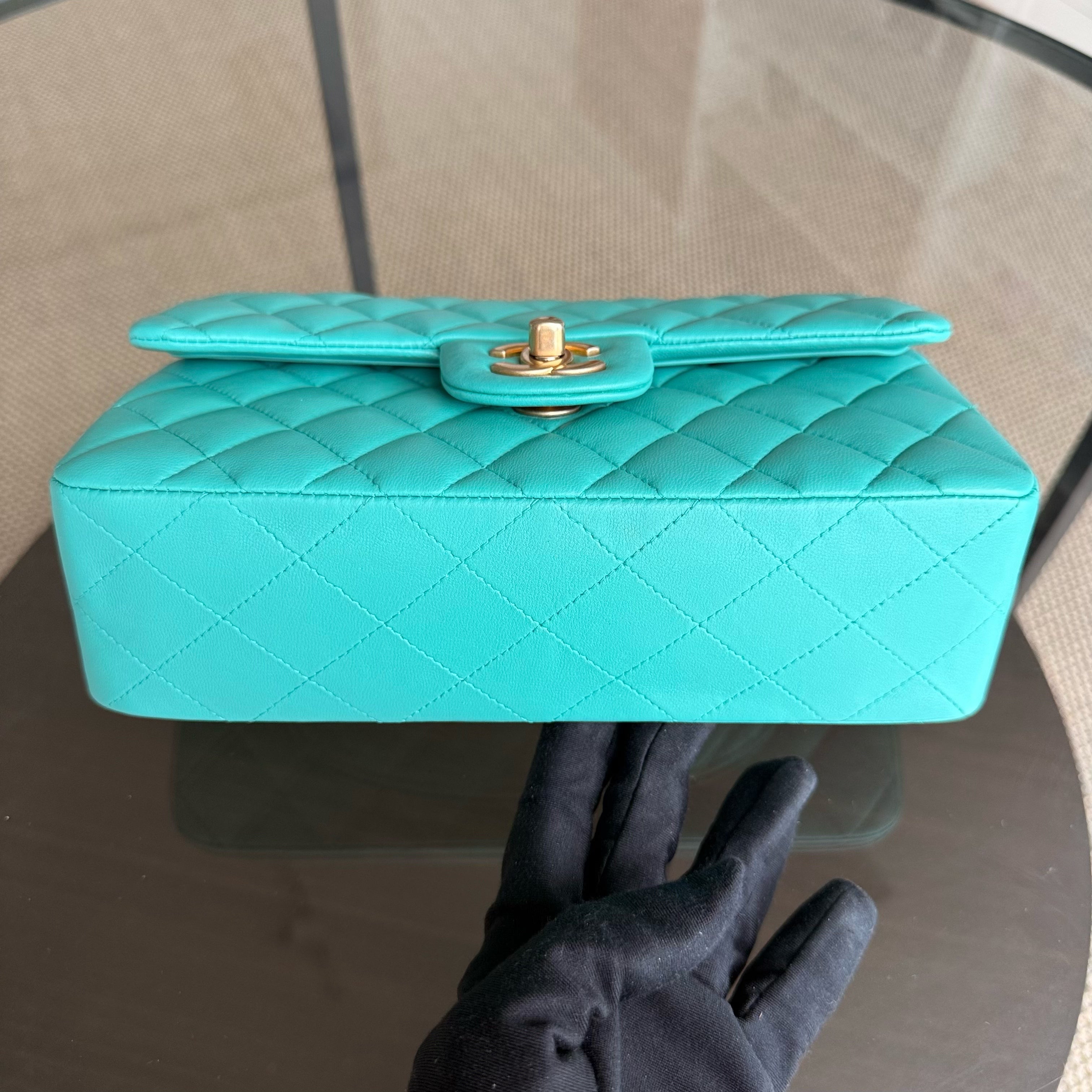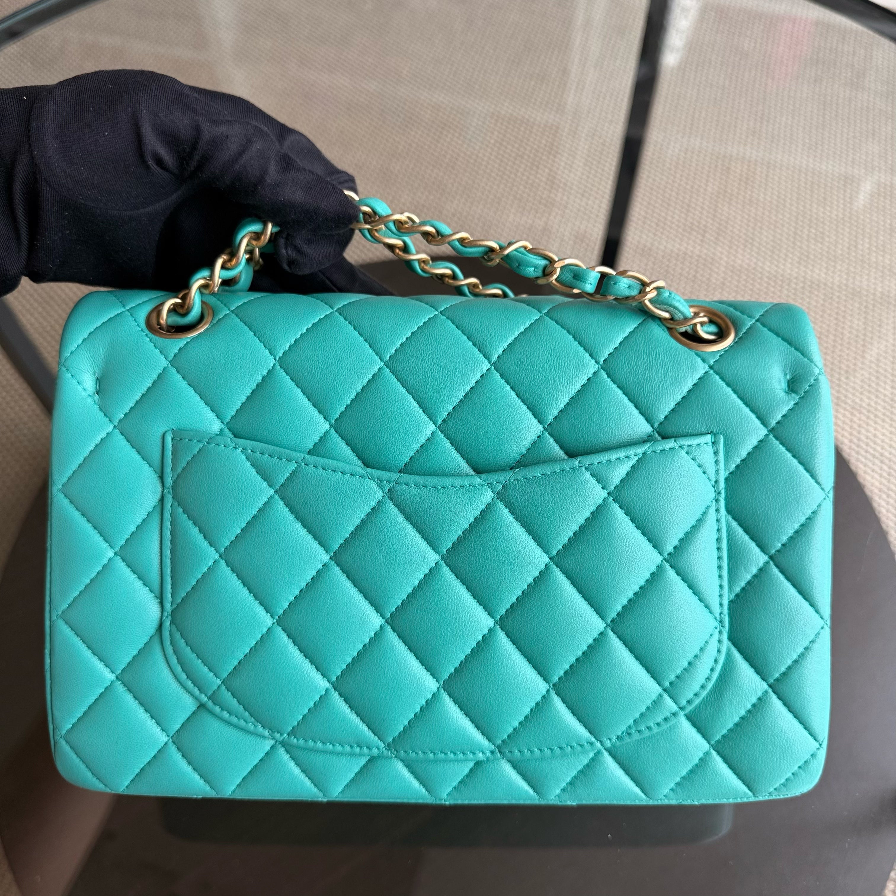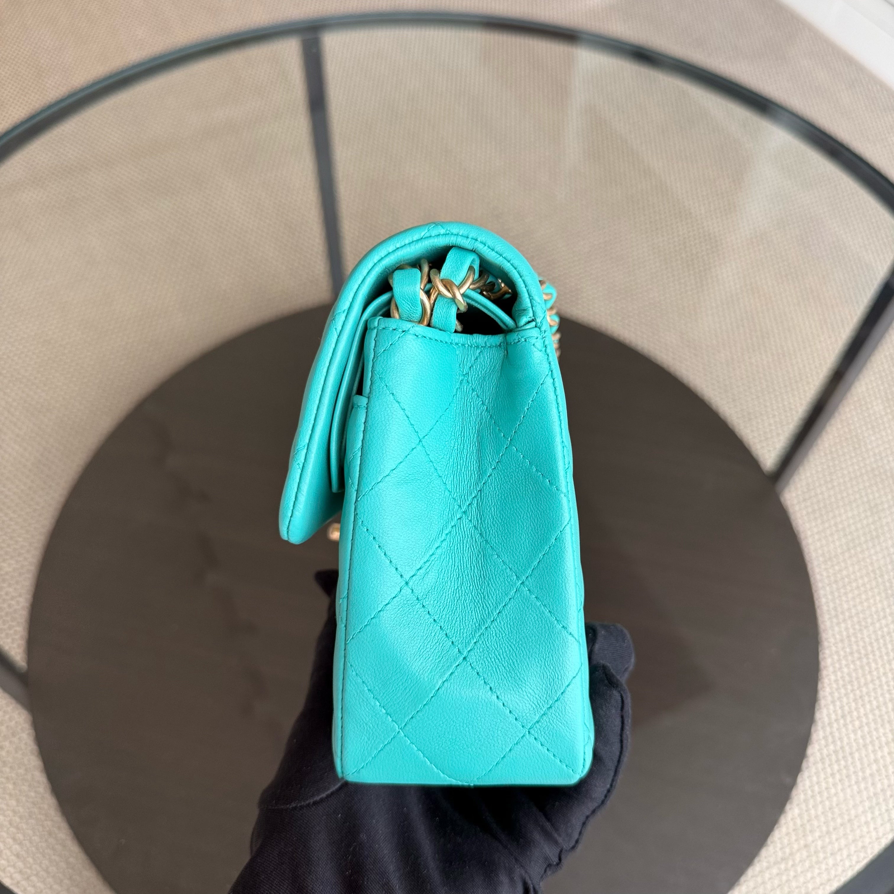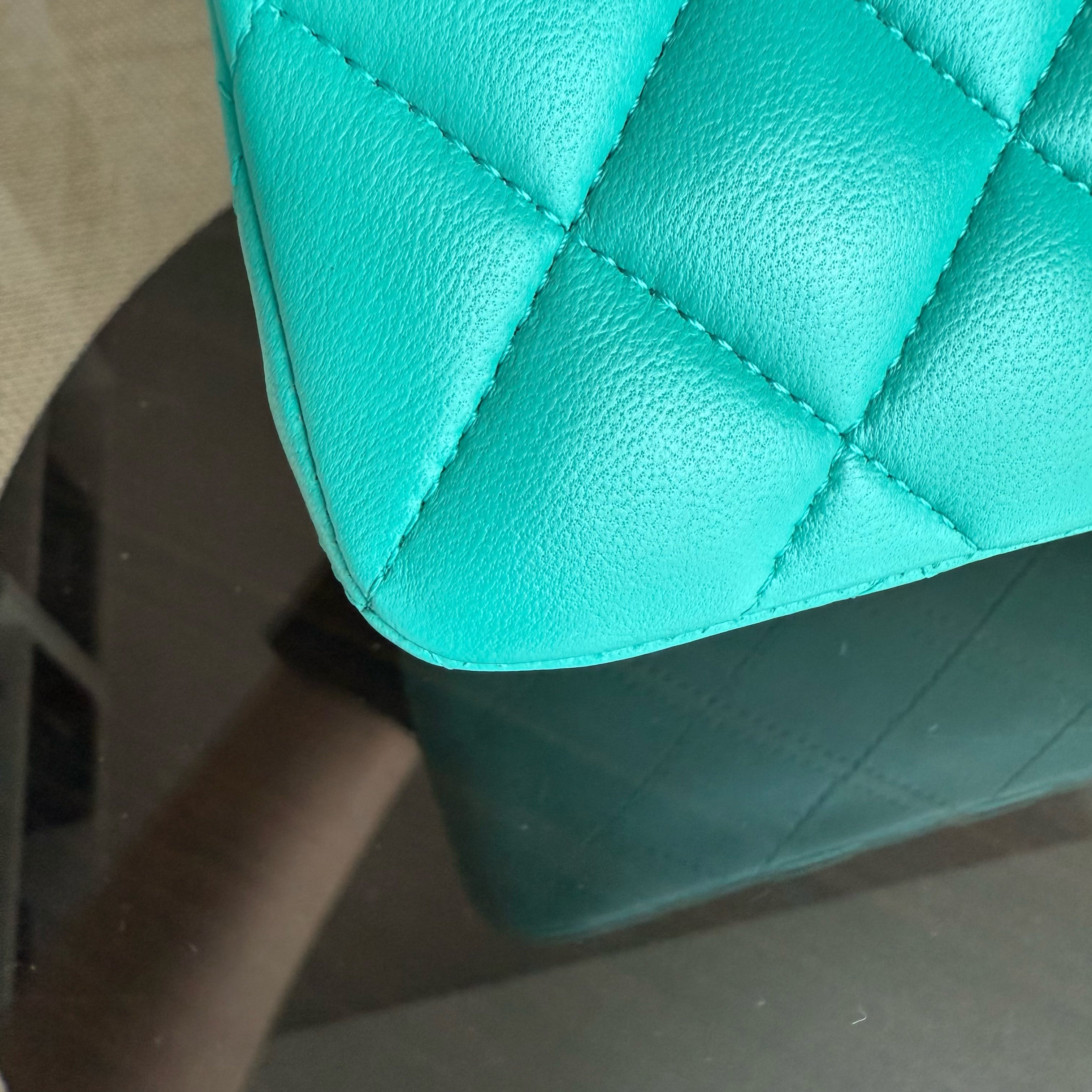 Chanel Classic Flap Small - 23CM Quilted Lambskin Blue Green Gold Hardware Series 27