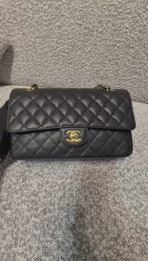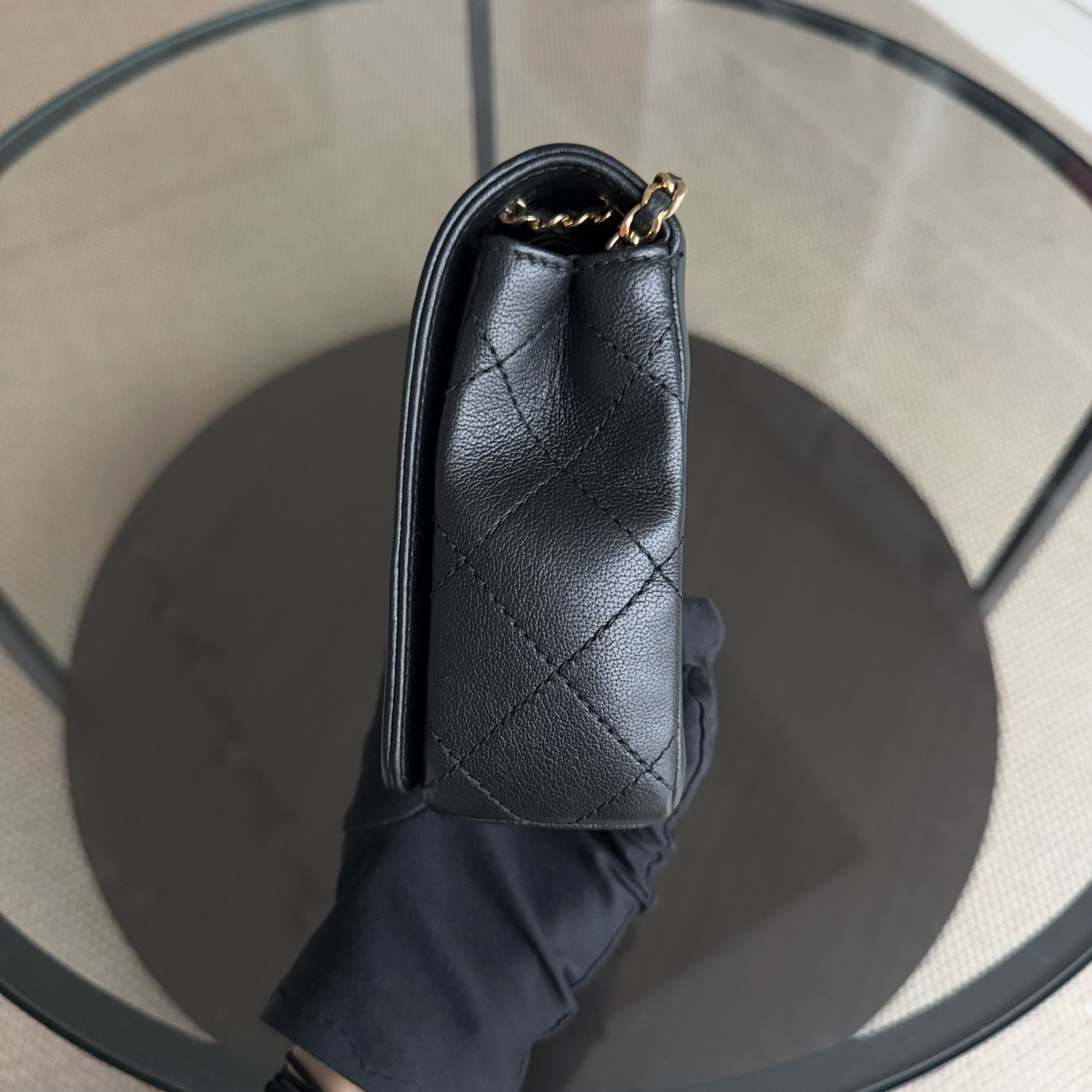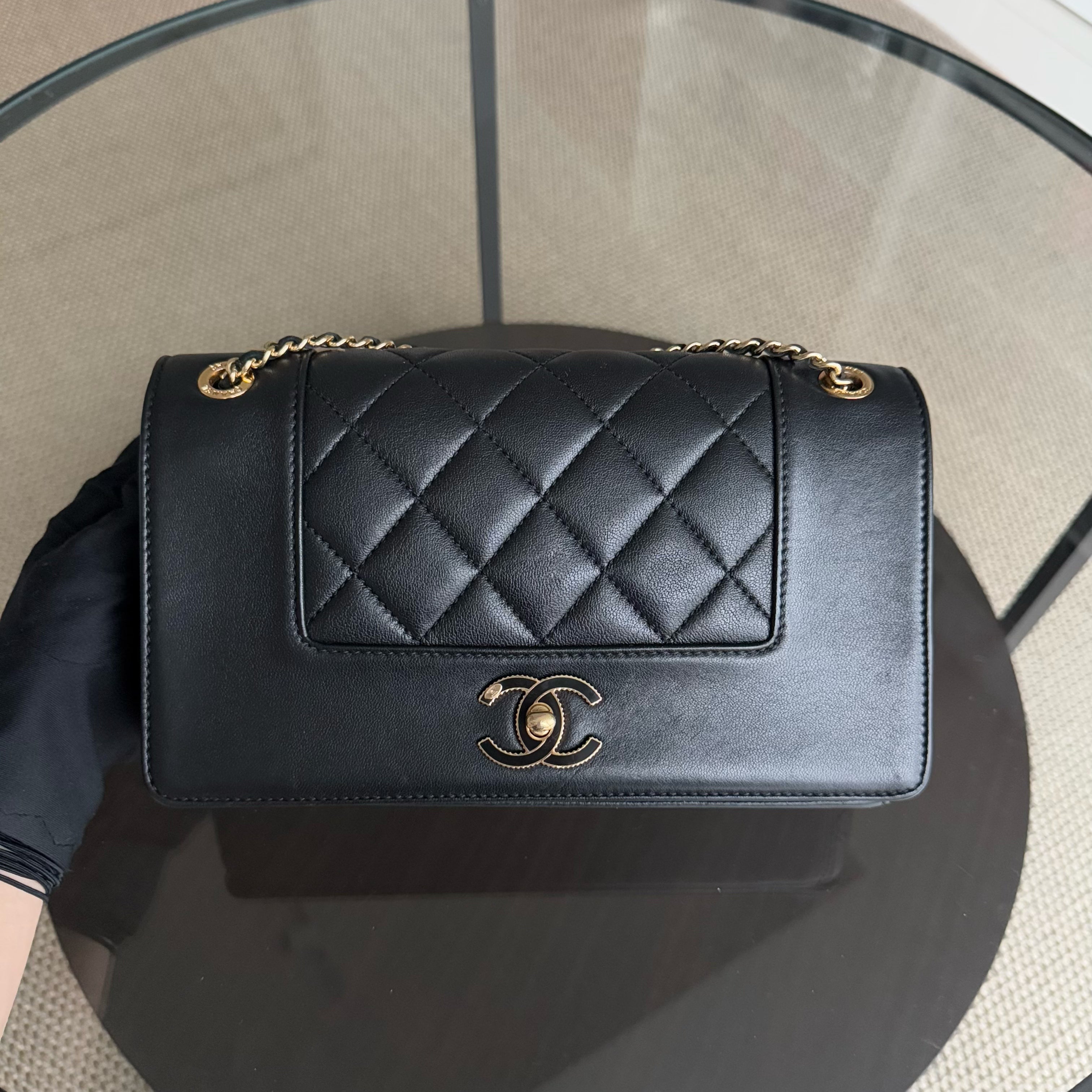 Chanel Mademoiselle Medium - 25CM Quilted Lambskin Black Gold Hardware Series 21 & Half of amount for Chanel Classic Flap BLACK CAVIAR GHW MEDIUM & Balance of Chanel Classic Flap Medium - Caviar 25CM Quilted Cream white Gold Hardware