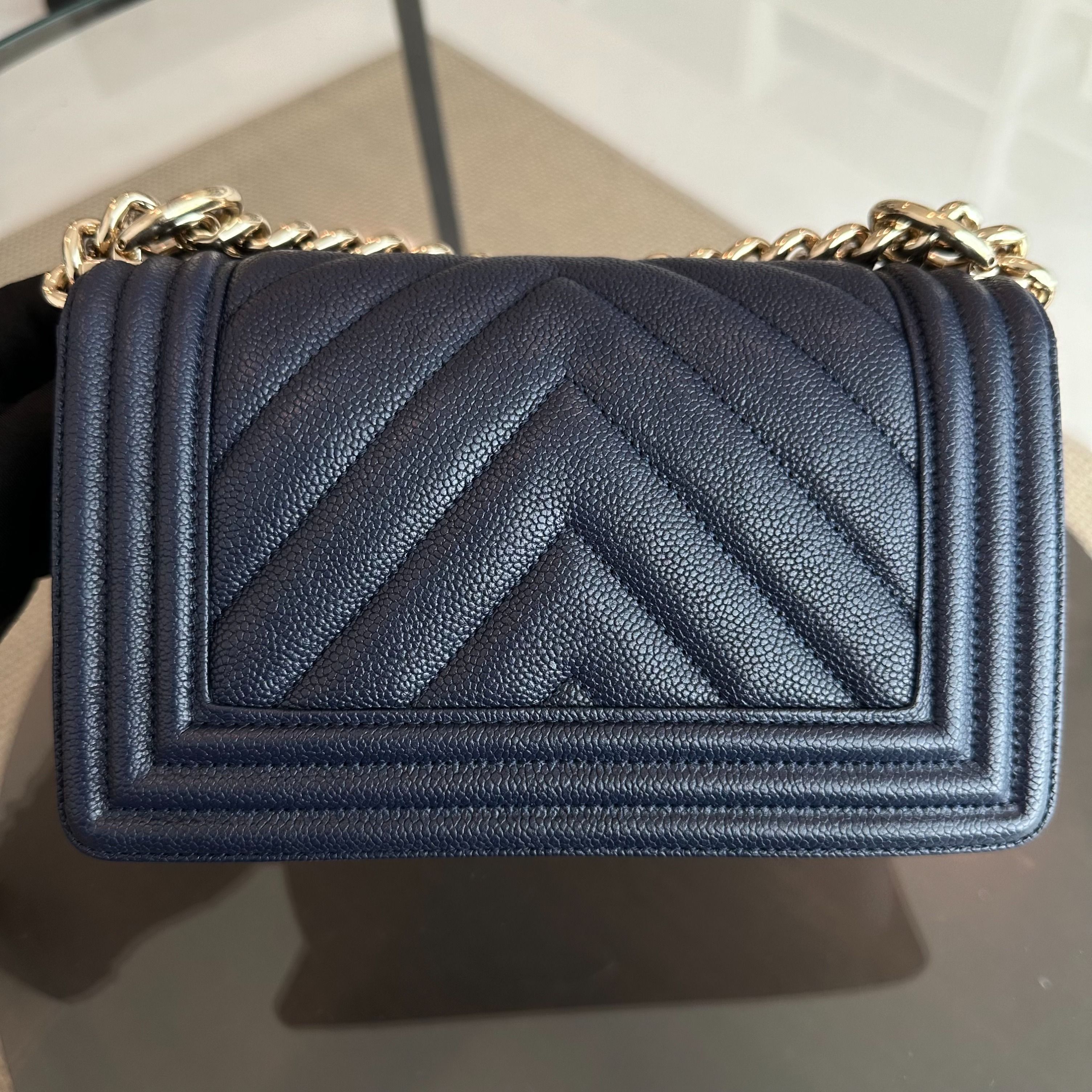 *Like New* Caviar Boy Small 20CM Chevron Grained Calfskin Leboy Dark Blue GHW No 24